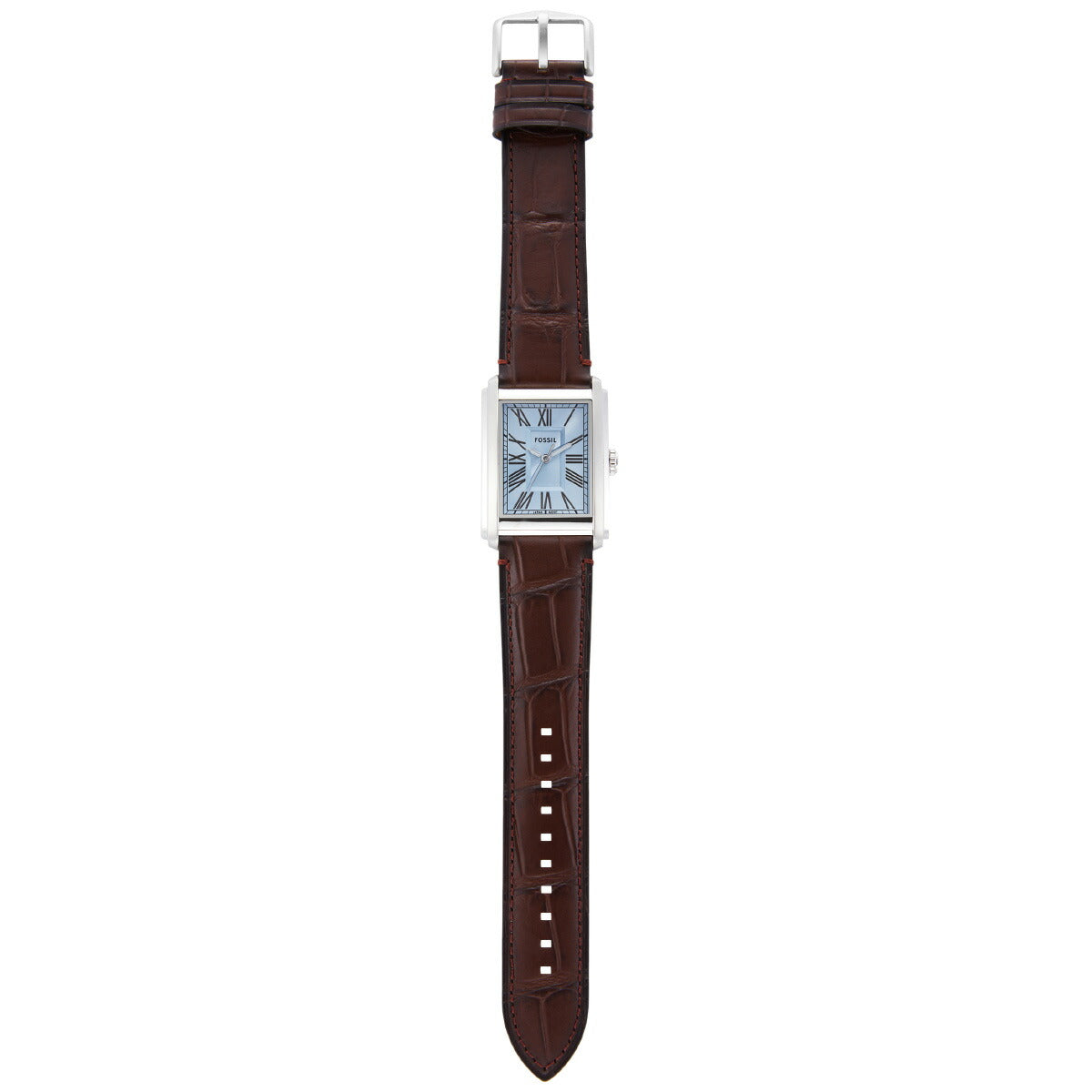 手元にたちまちクラシックな雰囲気を添えるCARRAWAY。ごく小さなディテールまで、一つひとつ緻密にデザインされています。二層のブルーのサンレイダイヤル、手首に沿うようカーブをつけたケース、柔らかなヌバックのライニングを施したレザーストラップが魅力的な、着け心地のよいタイムレスなウォッチです。Fossilのレザー製品は、Leather Working Group(LWG)を通じて責任あるものづくりを支援しています。