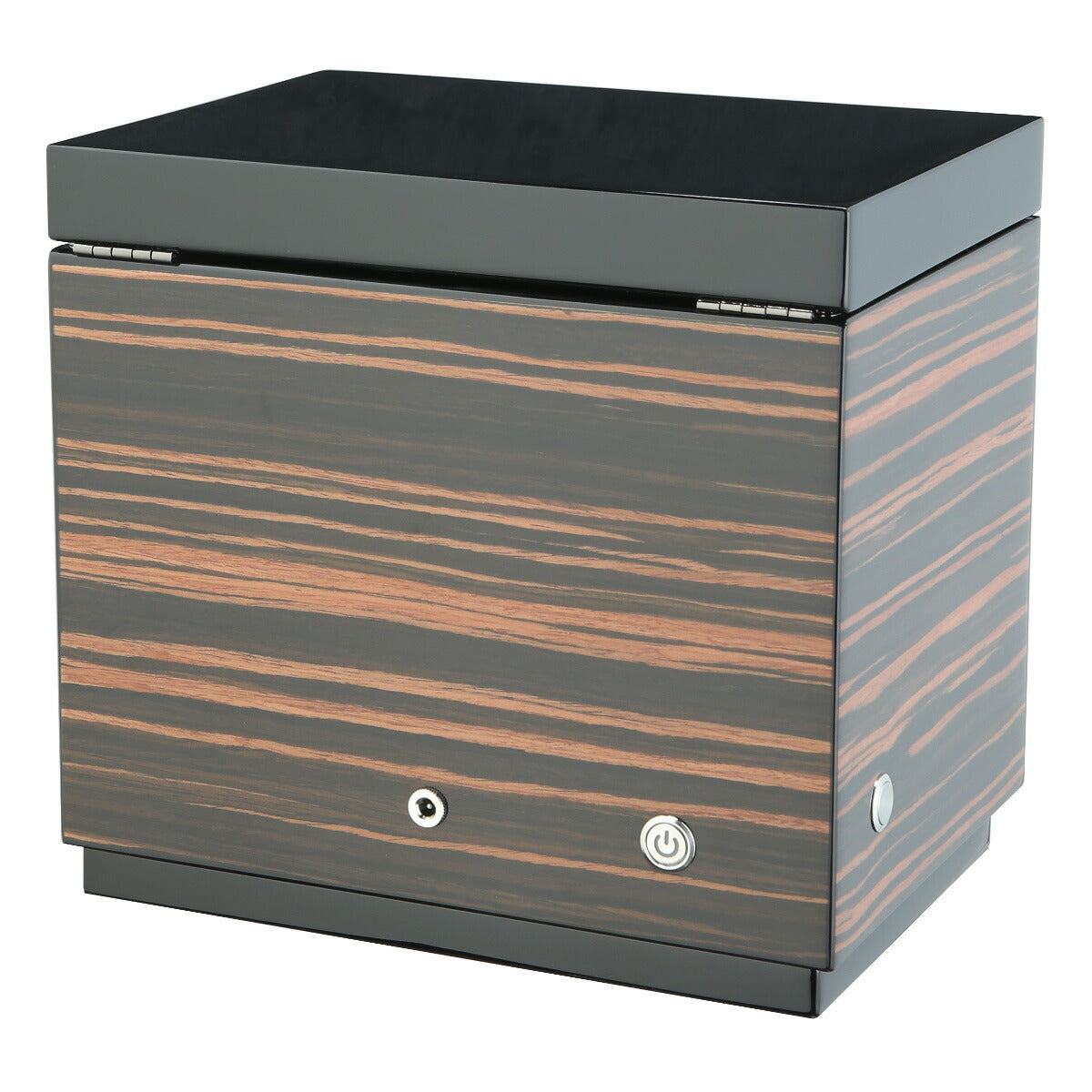 機械式自動巻時計を巻き上げるワインディングマシーン。蓋を開けると上部には時計を収納できるようになっています。回転数、回転方向はリモコンで設定する他、1タッチで設定が完了するオート設定機能も搭載しています。