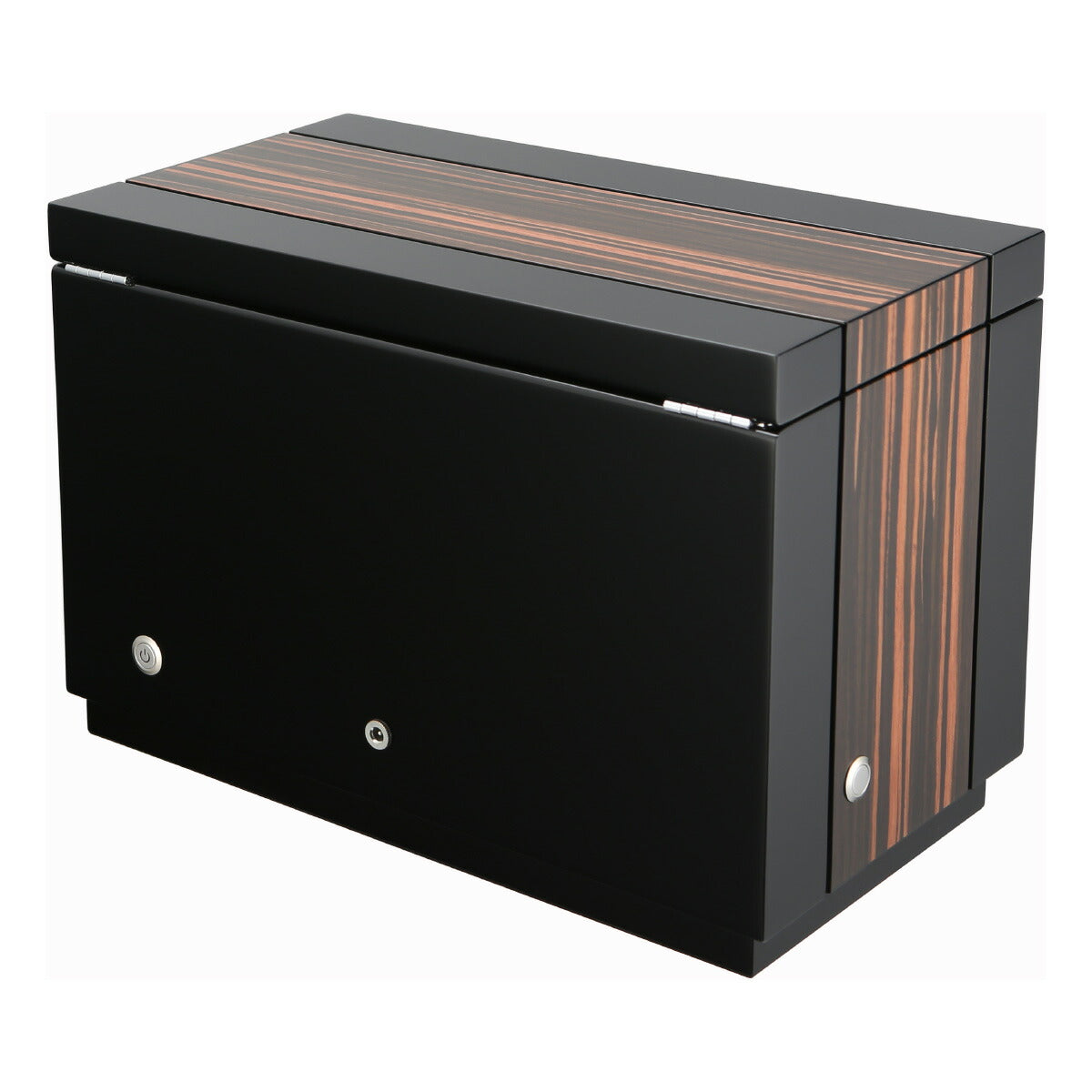 機械式自動巻時計を巻き上げるワインディングマシーン。蓋を開けると上部には時計を収納できるようになっています。回転数、回転方向はリモコンで設定する他、1タッチで設定が完了するオート設定機能も搭載しています。