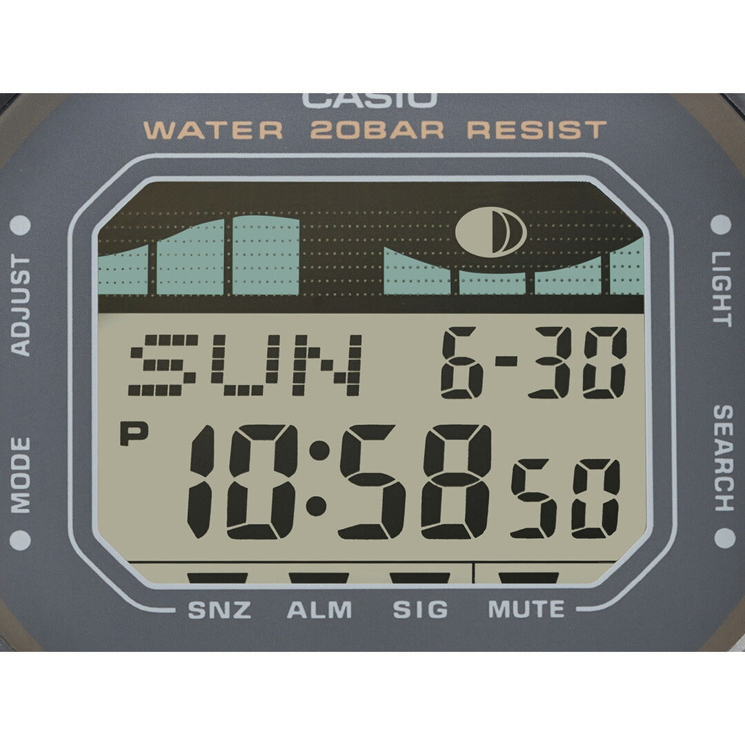 タイドグラフ機能付きスポーツラインG-LIDEの小型、薄型化したモデルです。再生可能な有機資源を原料としたバイオマスプラスチックをベゼルとバンドに採用し、環境への負荷低減に配慮しました。機能面ではサーファー必須の機能であるタイドグラフとムーンデータも備え、世界中の海でのライディングをサポートします。サーフシーンにおいて人気のノスタルジックなカラーで揃えた、ファッショナブルでスポーティなモデルです。