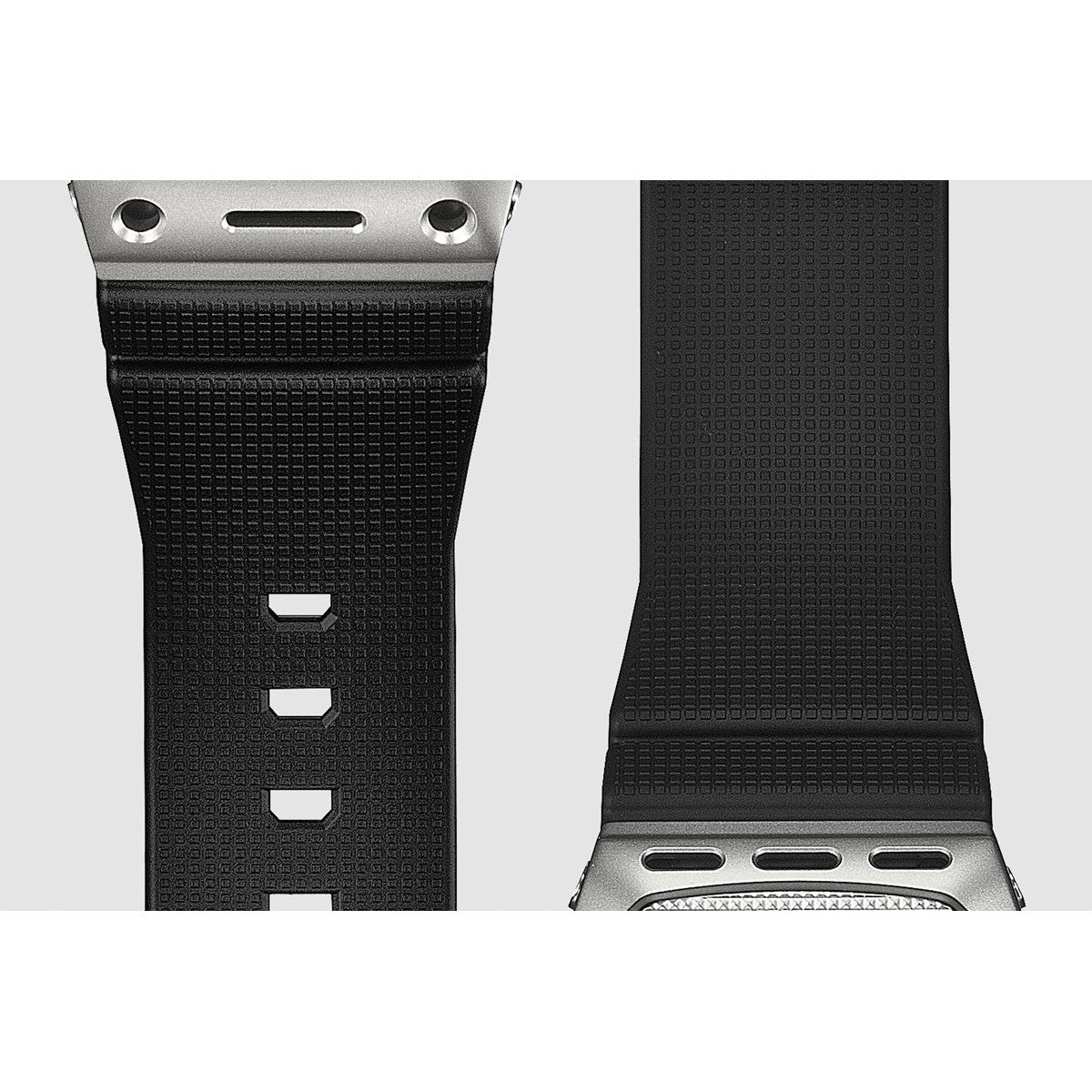 タフネスを追求し進化を続けるG-SHOCKから、モダンなインダストリアルデザインをテーマに機能美を追求し、G-SHOCKの耐衝撃性の要素をシンプルにデザインに落とし込んだモデルです。ベースモデルには、アナログ・デジタルコンビネーションモデルGM-2100を使用しています。シンプルさと機能美の共存を目指し、無彩色のカラースキームを採用。G-SHOCKの耐衝撃性を象徴するメタルの八角形ベゼルには、モダンインダストリアルデザインでも多く見られるチェッカリングパターンを施し、メタルベゼルや、機能表示をマーキングした赤いアクセントカラーが、機能性を豊かに表現しています。ベゼルの切削穴からは、耐衝撃構造を実現するためにモジュールを保護しているガラスファイバー強化樹脂製のセンターケースが見え、耐衝撃構造を視覚的に表現しています。シンプルで普遍的なデザインと実用的な機能を併せ持ち、長く愛用できるアイテムです。