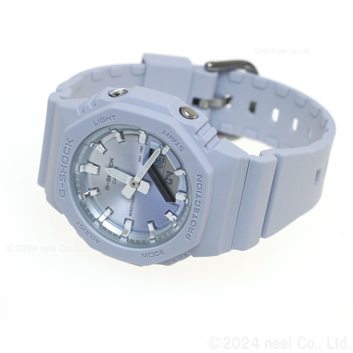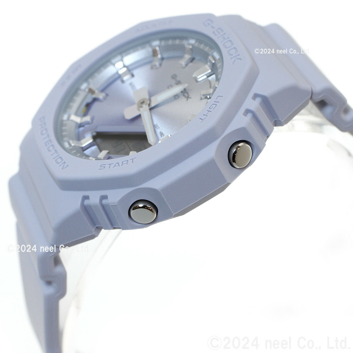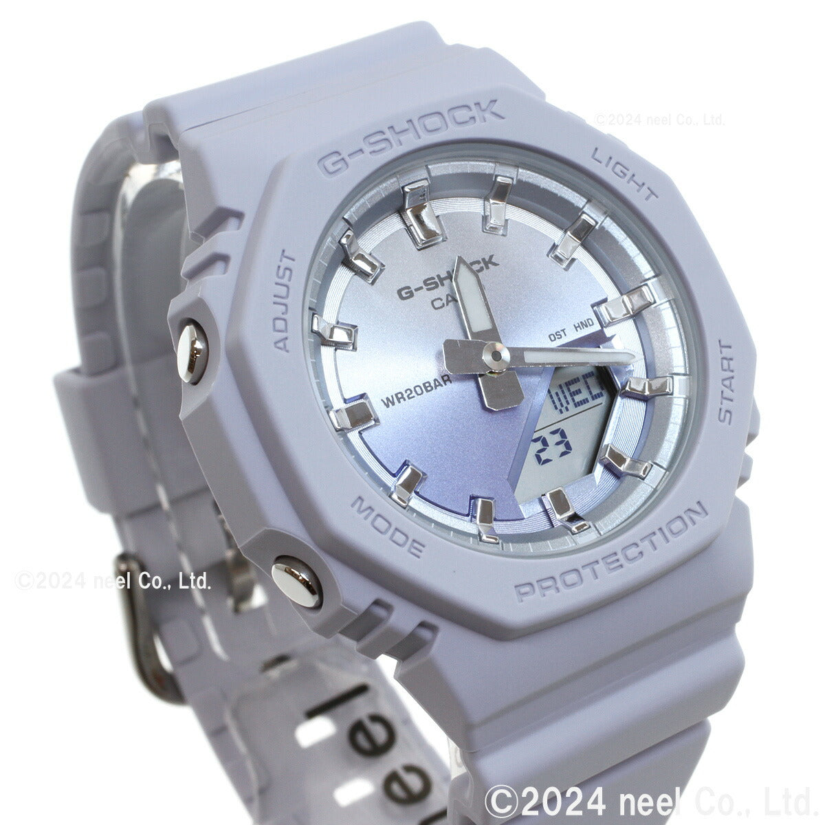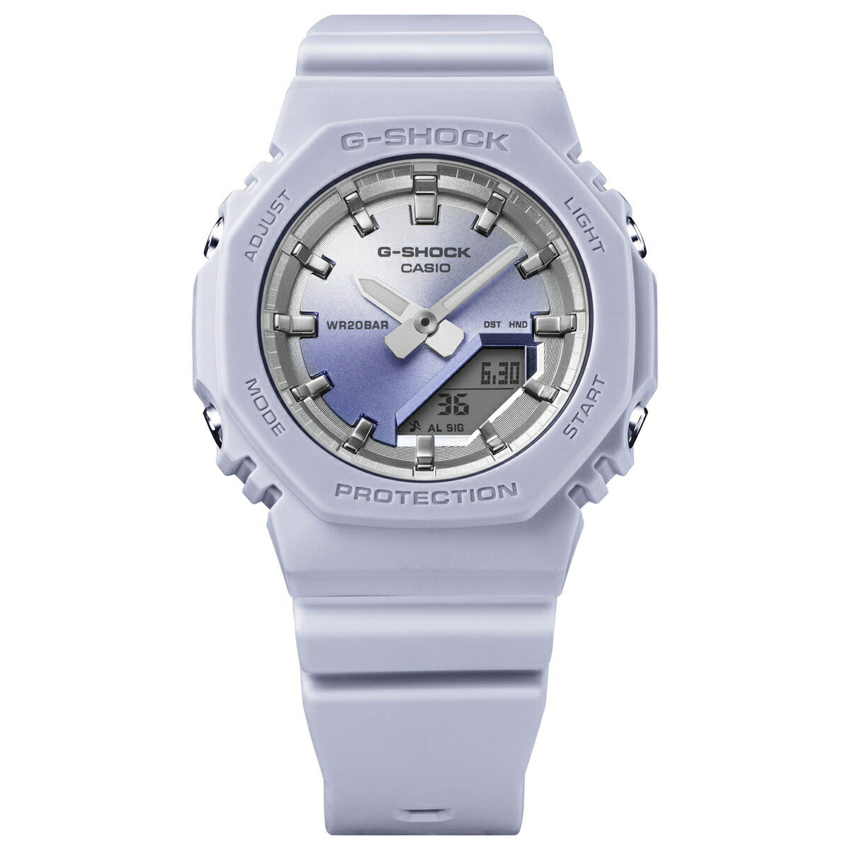 飽くなき強さを求めて進化を続けるタフネスウオッチG-SHOCKから、サンセットビーチの美しい情景をテーマにしたモデルです。夏の太陽が1日の終わりに見せる美しい輝きを、ダイアルにあしらった光沢感のあるグラデーション蒸着で表現しました。ベースモデルは、人気のデジタル・アナログコンビモデルGMA-S2100を更に小型化したGMA-P2100。バンドの長さも短くすることで、手首の細い方にもフィットするよう装着性を高めました。美錠とサイドボタンもステンレス素材を使用し、質感を高めています。シンプルでミニマルな印象になるように仕上げました。ベゼル、バンドの主な樹脂パーツにバイオマスプラスチックを採用。原料に再生可能な有機資源を使うことで、環境負荷低減への貢献が期待されています。リゾートスタイルのアクセントとして、手元に華やかさをプラスします。