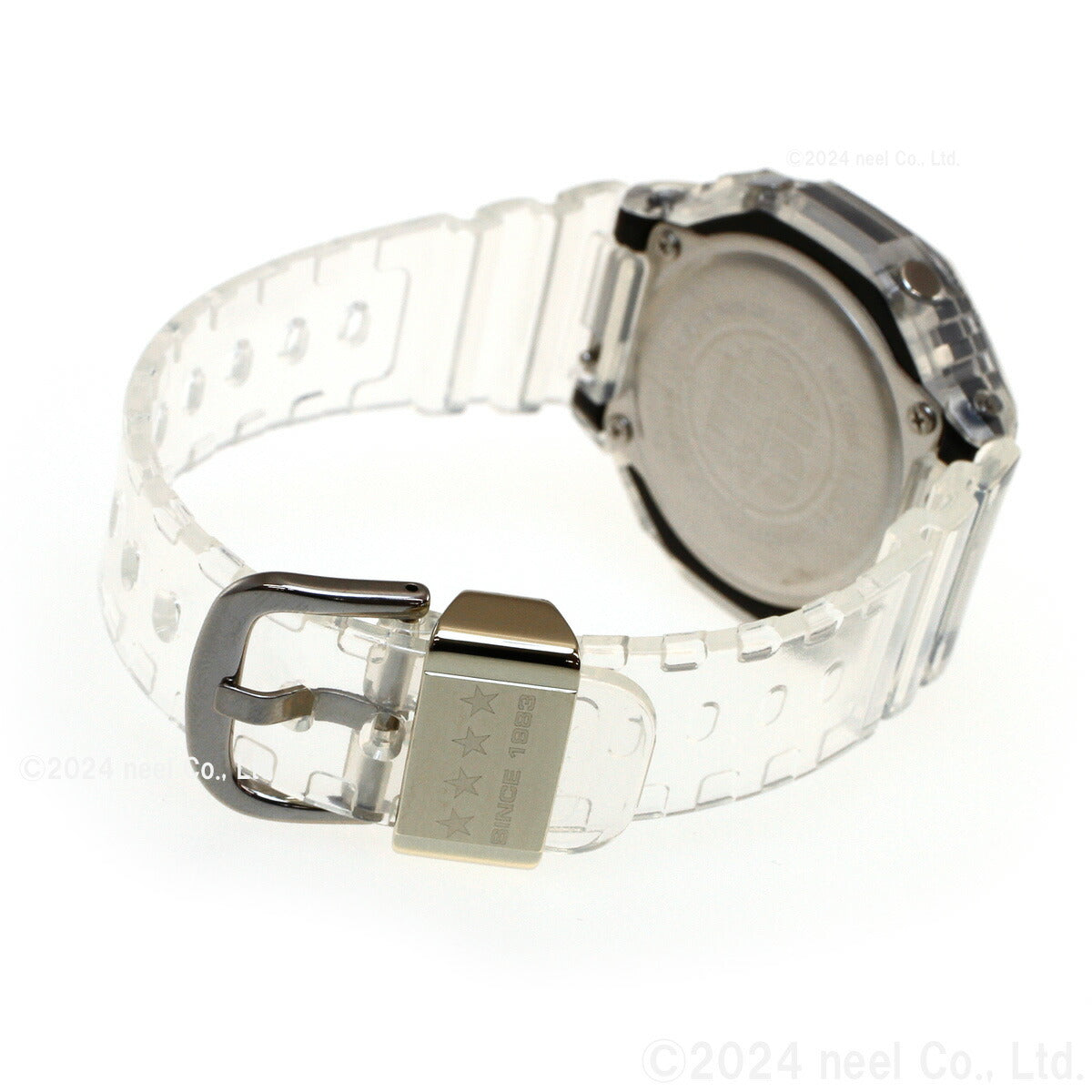 1983年の誕生以来タフネスを追求し、2023年に40周年を迎えるG-SHOCKの限定モデル「G-SHOCK 40th Anniversary Clear Remix(クリアリミックス)」シリーズです。G-SHOCKの人気モデルの再構築をイメージし、クリアパーツを使用することで、これまでにない透明感を表現しました。ベースデザインには、ペアでも着用できる、GMAS2100を採用しています。文字板、インデックス、見切りに透明素材を使用。特徴的なフェイスの造形を、各パーツの形状まで鮮明に見せるデザインに仕上げました。文字板裏面に施した黒印刷は、誤動作の原因となる外光の侵入を防ぐとともに、表情を引き締めるカラーアクセントの役割も担っています。また、ケースバックにはG-SHOCK25th、30th、35thのロゴもデザインを手がけたエリック・ヘイズの手による40thロゴを、遊環や中留などには“40”を表現するスターマークを刻印するなど、限定モデルに相応しい仕様になっています。