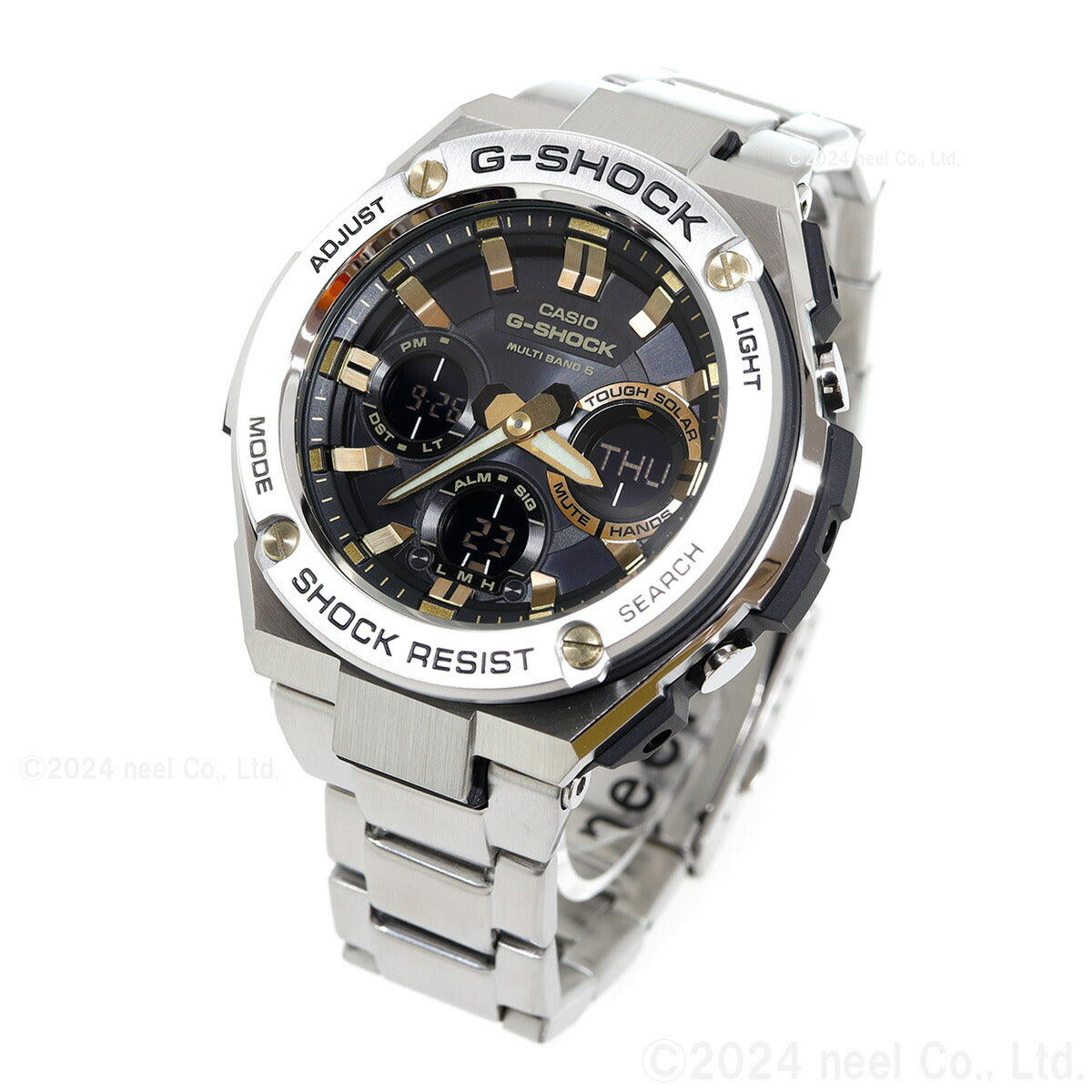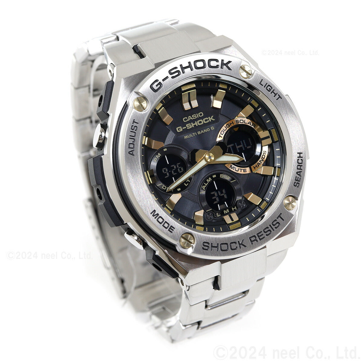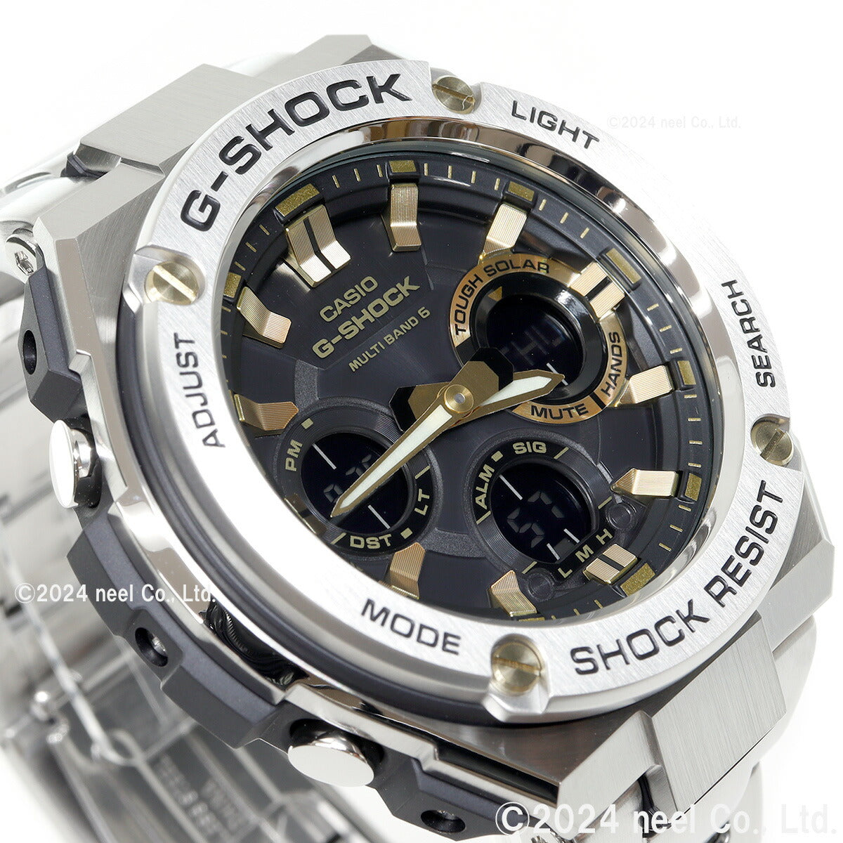 G-SHOCK 電波 ソーラー 電波時計 ブラック×ゴールド G-STEEL カシオ Gショック Gスチール CASIO 腕時計 アナデジ タフソーラー GST-W110D-1A9JF