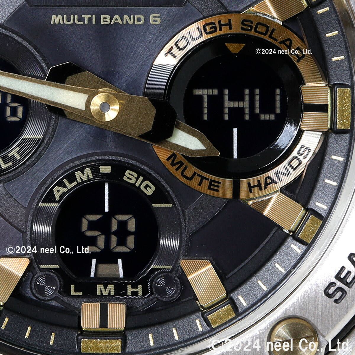 メンズ ブラック×ゴールド アナデジ タフソーラー GST-W110D-1A9JF