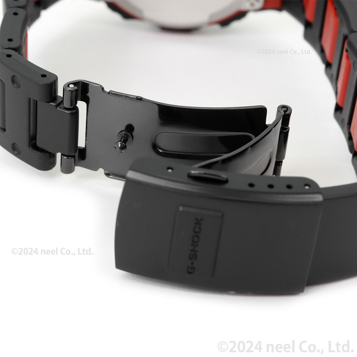 初代モデルDW-5000Cの誕生から形を変えずに進化し続けるスクエアデザインの5000/5600シリーズから、新構造のバンドを採用したGW-B5600HRが登場します。バンドの外駒は樹脂の中にメタルパーツを埋め込み、中駒は軽量かつ耐久性の高いファインレジン素材を採用することで軽量化と強度を追求したデザインに仕上げました。中駒の裏側に鮮やかなレッドを配色することでアクセントカラーをさりげなく表現します。バンドの留め具はワンプッシュ三つ折れ式となっており、スムーズに装着できます。機能面では正確な時刻精度を追求し、Bluetooth通信機能と、世界6局の標準電波に対応するマルチバンド6を搭載。専用アプリケーションG-SHOCK Connectedとの連携により、インターネット上のタイムサーバーから正確な時刻情報を取得します。世界6局の標準電波に対応するエリアでは、自動時刻修正を行い正確な時刻を取得する電波受信機能を備えます。また、カシオ独自の省電力技術によるタフソーラーで、安定的な駆動を可能にし、高輝度なフルオートLEDバックライトや、ワールドタイムなどの実用性も備えます。また、先進のエンジンを搭載しながら、高密度実装技術によりサイズをキープ。完成度を極めたデザインを継承しながら性能を進化させました。初代から受け継がれるコンセプトはそのままに、時計としてのクオリティを追求したGW-B5600HRの登場です。