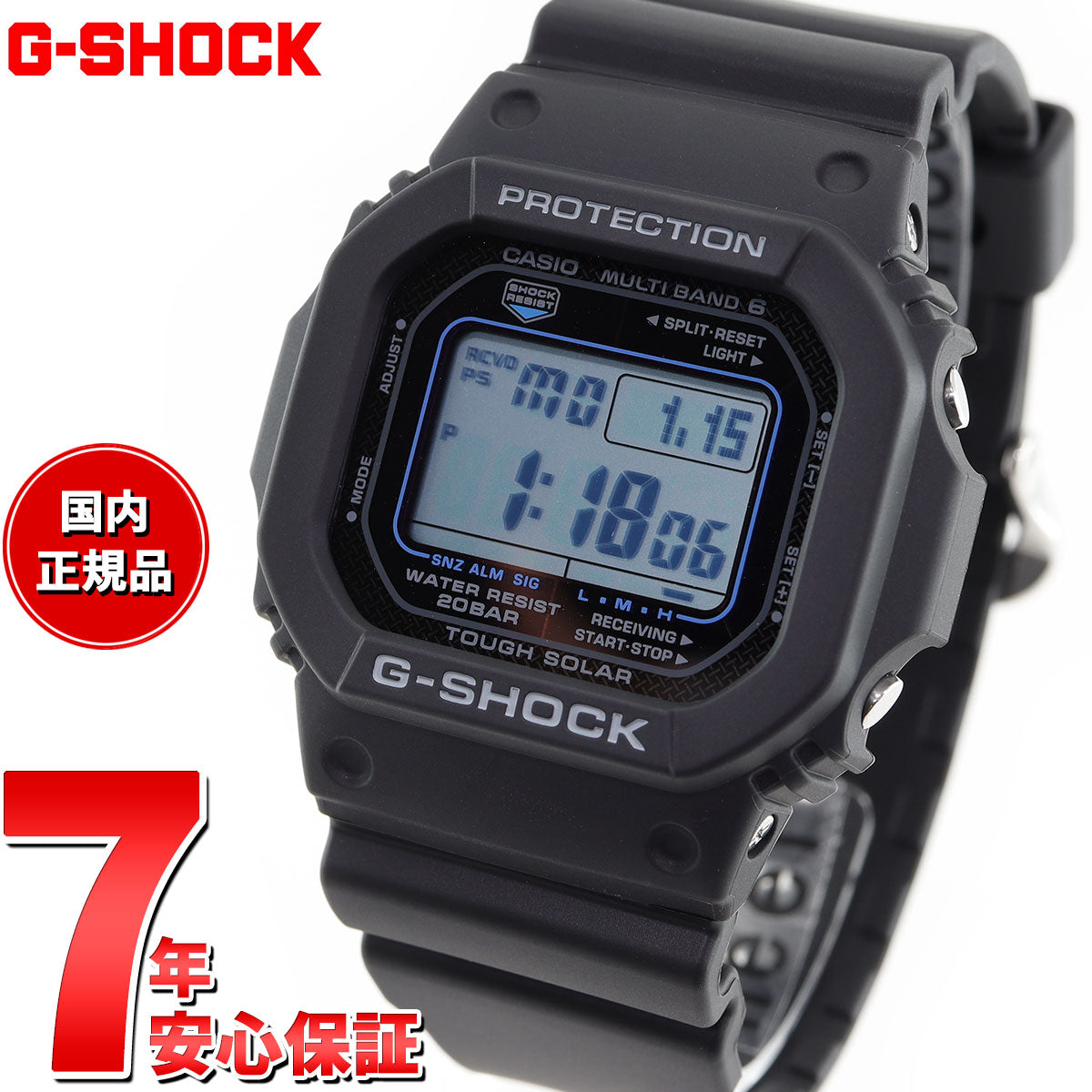 1983年に誕生したDW-5000Cのデザインを継承しているスクエアフェイス5600シリーズのマルチバンド6搭載モデルです。ファーストモデルDW-5000のケース形状、文字板デザインを受け継ぎ、クラシカルなデザインとしました。タフネスをコンセプトに進化を続けるG-SHOCKの中で、ファーストモデルのDNAを受け継ぎ、更に進化したモデルです。