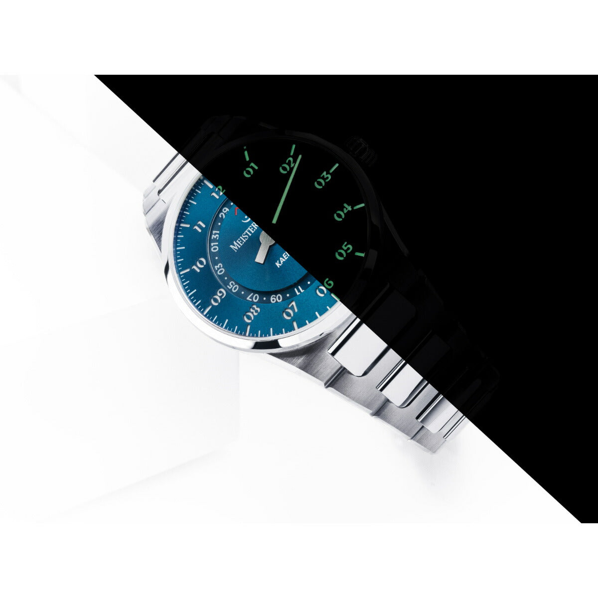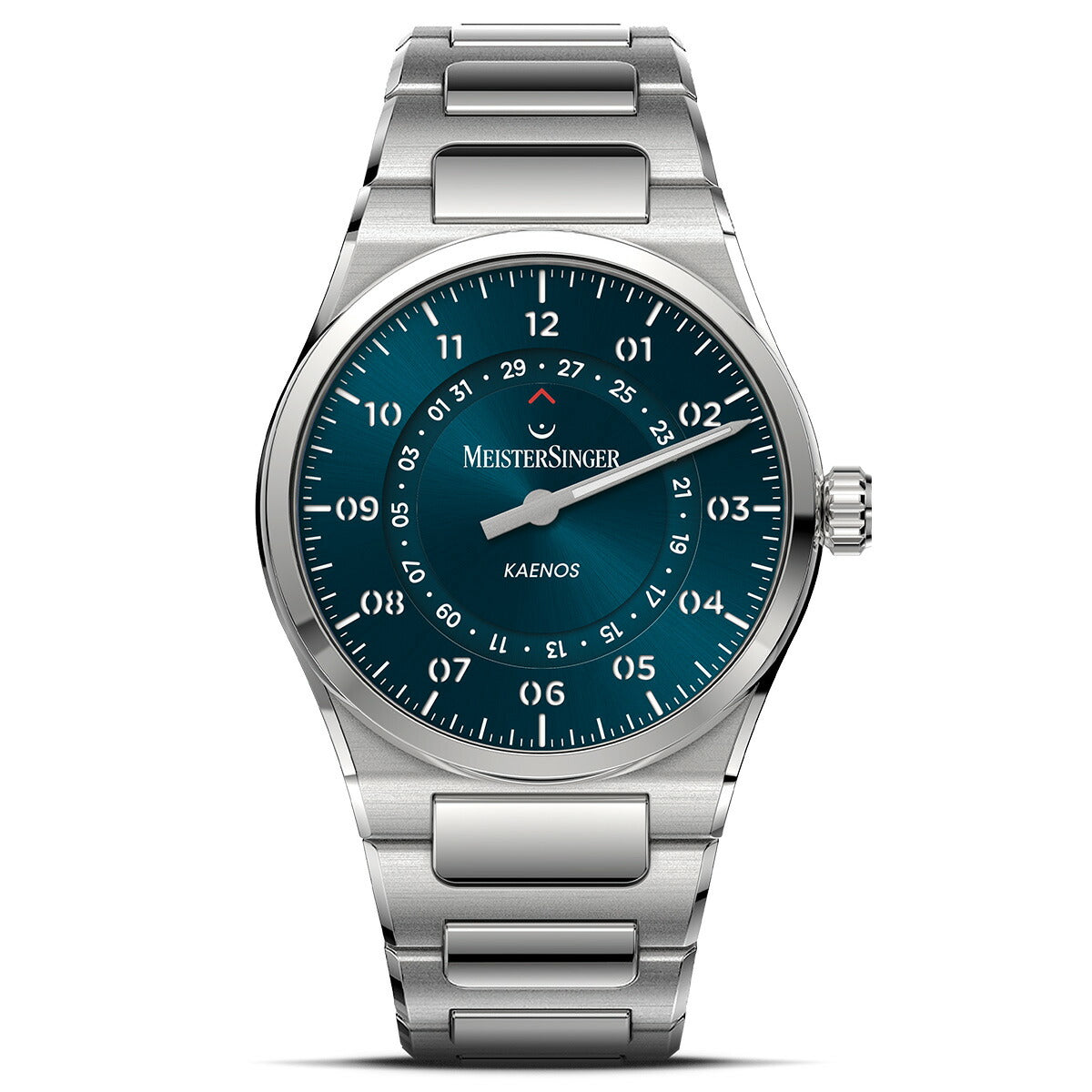 Kaenos(カエノス)は、完全にゼロから開発されました。「Kaenos」という名前は、ギリシャ語の「kainos(カイノス)」に由来し、「新しい」「新鮮な」という意味を持ち、また地球の歴史における再生の時代である「新生代(Cenozoic era)」を指しています。この名前は、MeisterSinger(マイスタージンガー)にとって新たなスタートを意味し、さらなるエキサイティングな進化を象徴するモデルにふさわしいものです。この新しい製品ファミリーは2つのラインに分かれています。一つは、6時位置にラージデイトを備えた「Kaenos」。もう一つは、12時位置の下にオープンデイトディスクを配し、日付を読むことができる「Kaenos Open Date」です。また、Kaenosはその優れたデザインが評価され、2025年のiFデザインアワードを受賞しました。