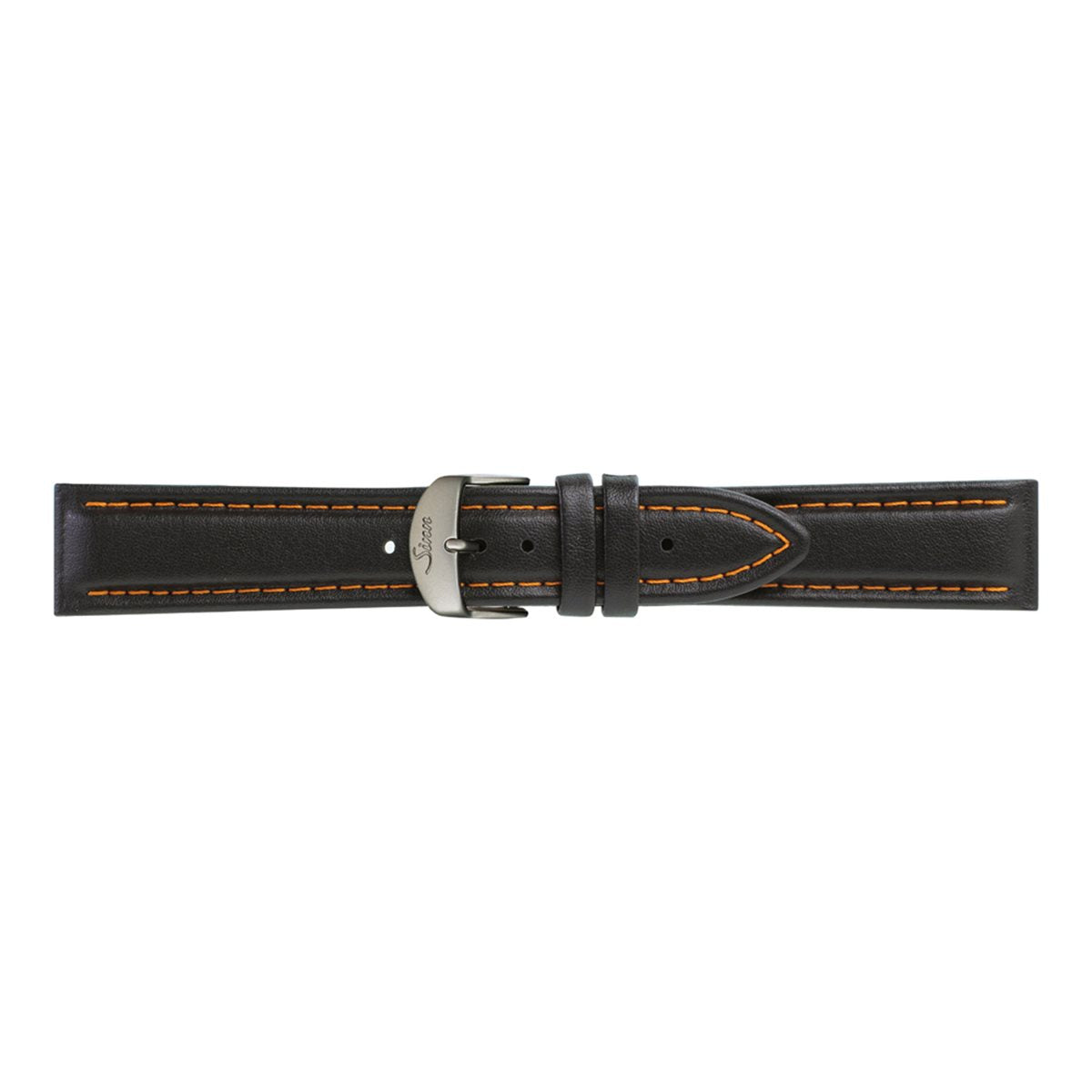 Sinnのカウレザーストラップは、上質なカウレザーを使用したブラックカラーのレザーベルトです。ステッチはオレンジで、洗練された印象を与えます。ベルト幅は20mm、尾錠はステンレススチール製、マット仕上げです。