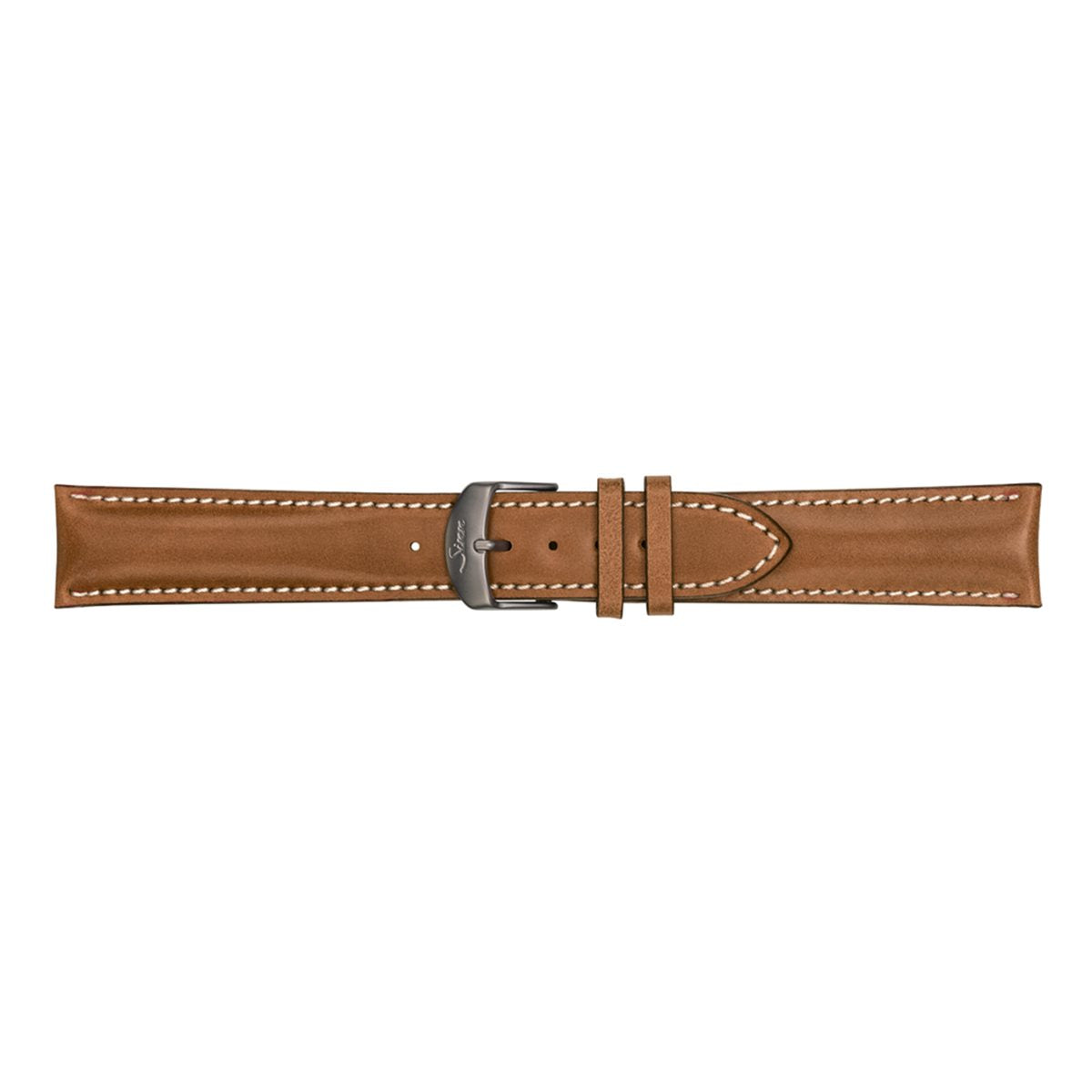Sinnのホースレザーストラップは、上質なホースレザーを使用したライトブラウンカラーのレザーベルトです。ステッチはホワイトで、洗練された印象を与えます。ベルト幅は22mm、尾錠はステンレススチール製、ポリッシュ仕上げです。