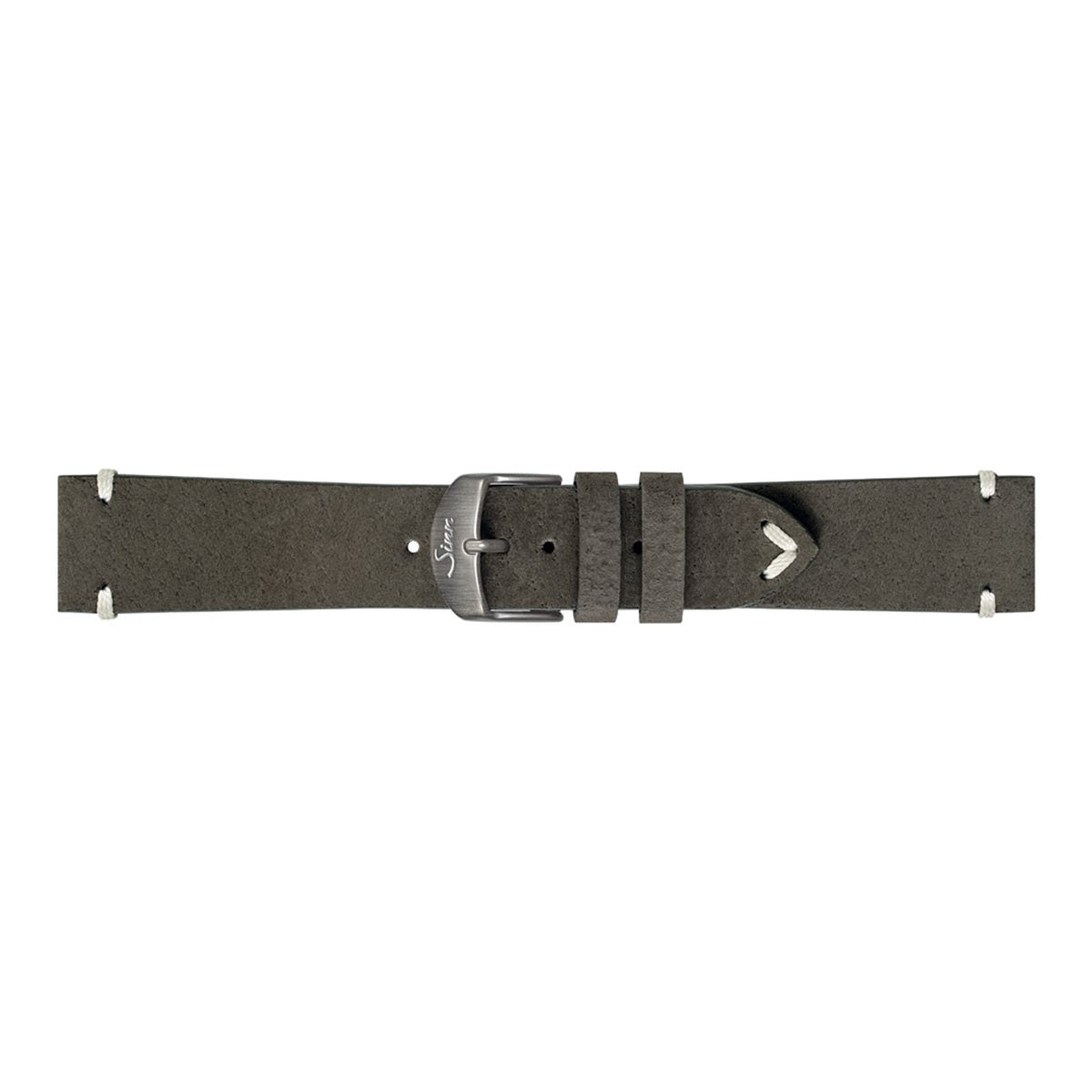 Sinnのヌバック ボアレザーストラップは、高品質なヌバック仕上げのイノシシ革を使用したグレーカラーのレザーベルトです。ステッチはホワイトで、洗練された印象を与えます。ベルト幅は20mm、尾錠はステンレススチール製、サテン仕上げです。独特の起毛感と、しっとりとした柔らかな肌触りが特徴。使い込むほどに風合いが増し、耐久性にも優れています。