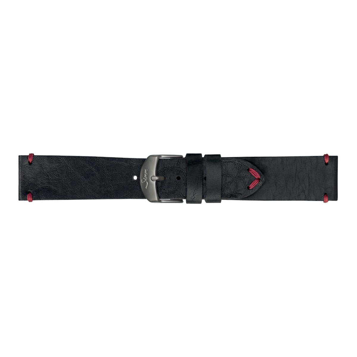 Sinnのヴィンテージカウレザーストラップは、ヴィンテージ仕上げの上質なカウレザーを使用したブラックカラーのレザーベルトです。ステッチはレッドで、洗練された印象を与えます。ベルト幅は20mm、尾錠はステンレススチール製、サテン仕上げです。