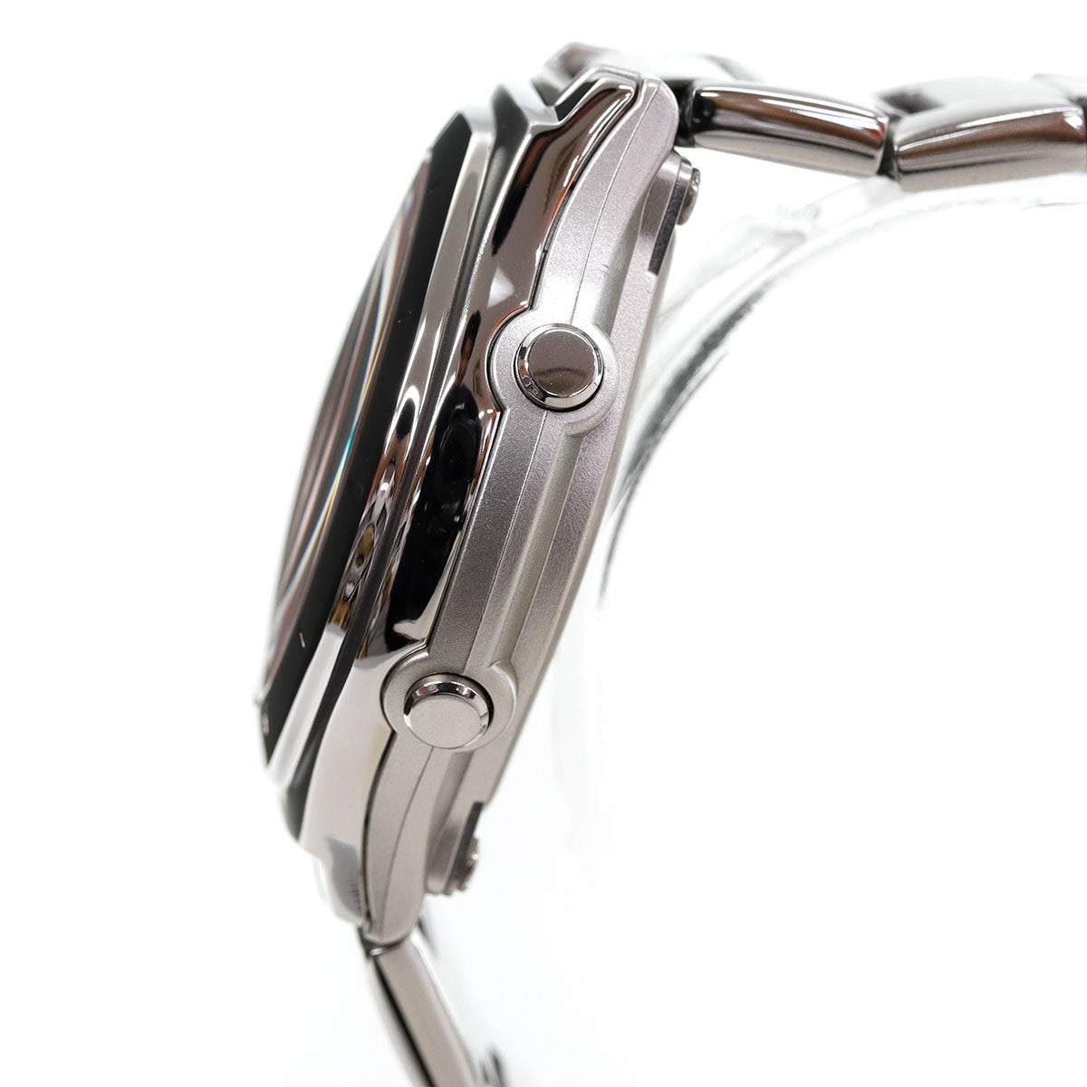日本・中国・アメリカ・ヨーロッパの標準電波に対応したマルチバンド6のソーラー電波時計です。曜日や日付、アラームなどを表示する便利な小窓が付いた2針タイプ。9時位置にはバッテリーの残量を示すバッテリーインジゲーターを搭載しました。