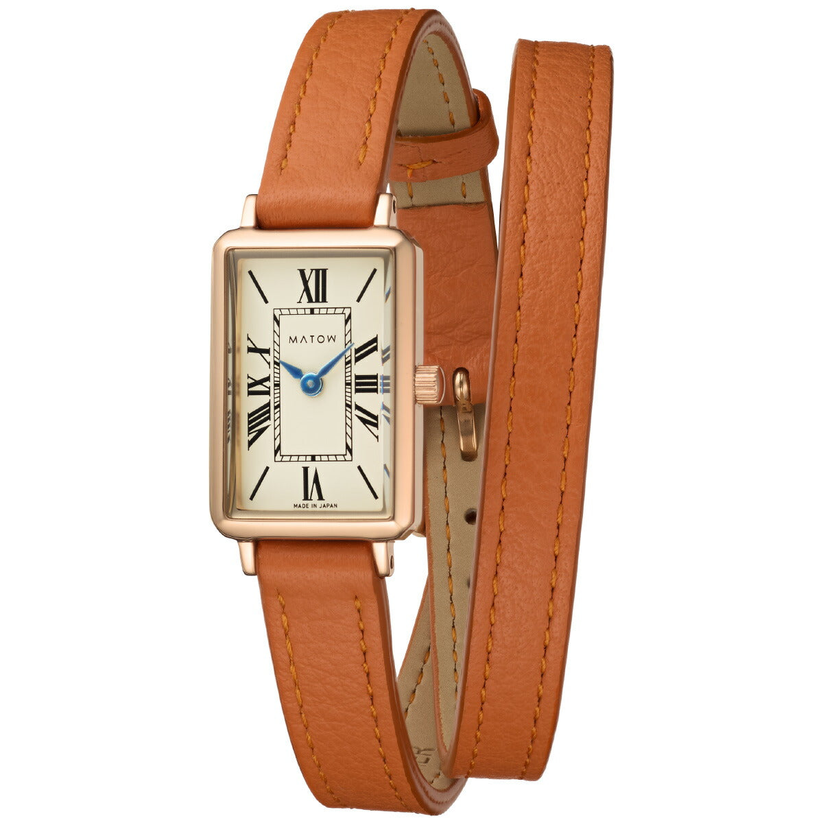 マトウ MATOW 腕時計 レディース Tsuki Collection 月華 げっか スクエア ローズゴールド クリーム ダブルターン オレンジレザー MW003007