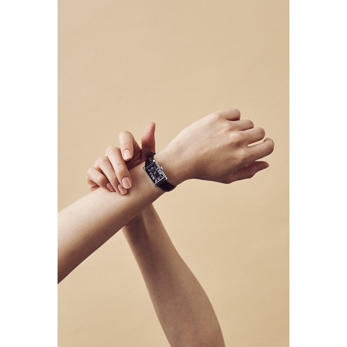 漆黒の文字盤と繊細なローマ数字が夜の静寂を思わせる知的でクールなデザイン。夜空に浮かぶ月が雲に包まれた幻想的な瞬間、それはまるで夢のような美しさ。そんな日本の詩情と優美な風景からインスピレーションを得た「朧月」コレクションは、洗練された美しさと精巧なデザインが魅力の腕時計です。『ノワール』では、漆黒の文字盤と繊細なローマ数字が夜の静寂を思わせる知的でクールな印象を演出。フランス語で“黒”を意味するその名の通り、深みのある美しさが特徴です。針とインデックスは、文字盤とのコントラストが洗練された雰囲気を引き立てるとともに視認性を高めています。さらにフルローマ数字を採用することで、上品で知的な印象を与えています。控えめでありながらも夜空に浮かぶ月のような神秘的な輝きを手元に纏える時計として提案します。洗練された漆黒のデザインが、日常から特別なシーンまで幅広く活躍することでしょう。「朧月」は、日本の美意識を体現した特別なコレクション。大切な人へのプレゼントにもおすすめです。