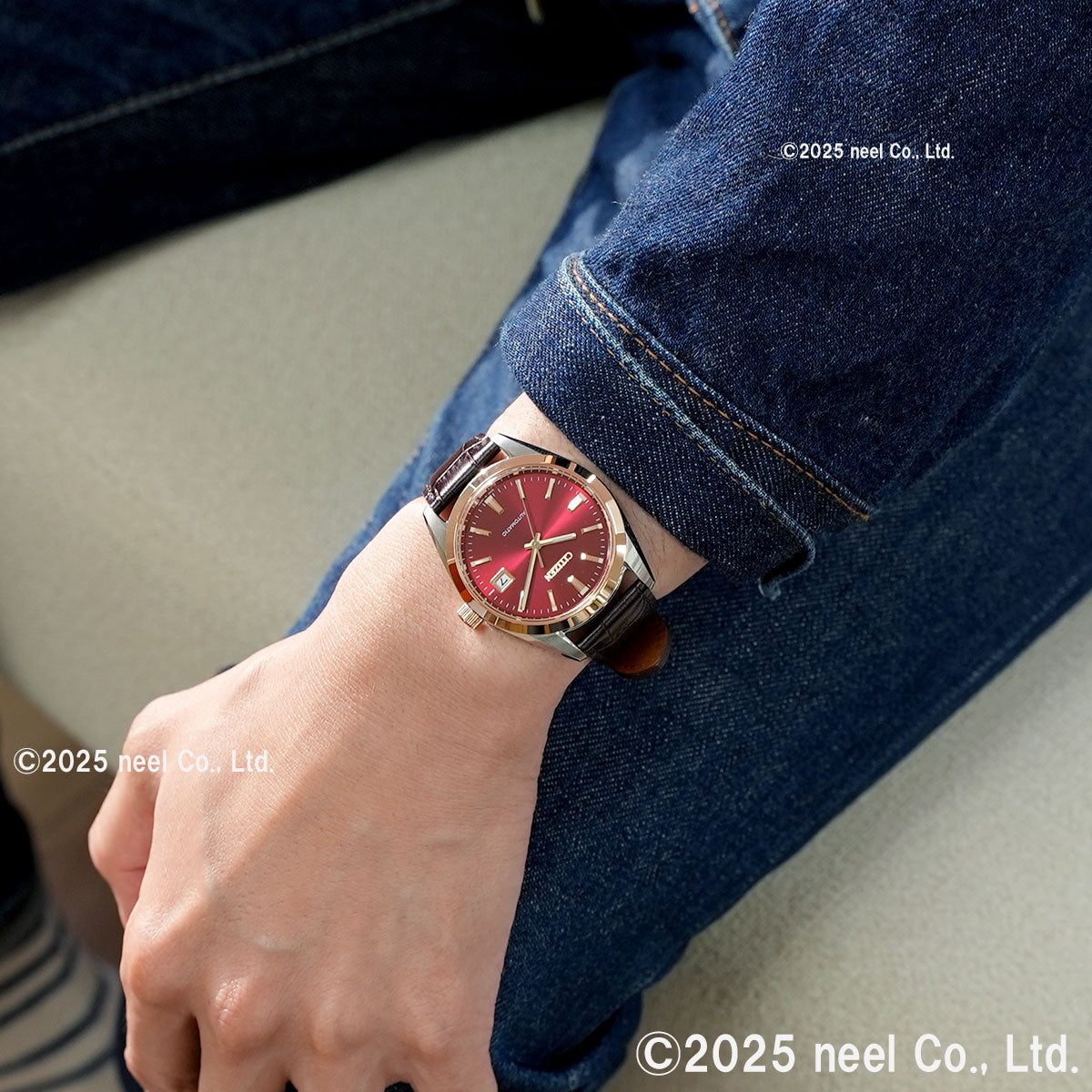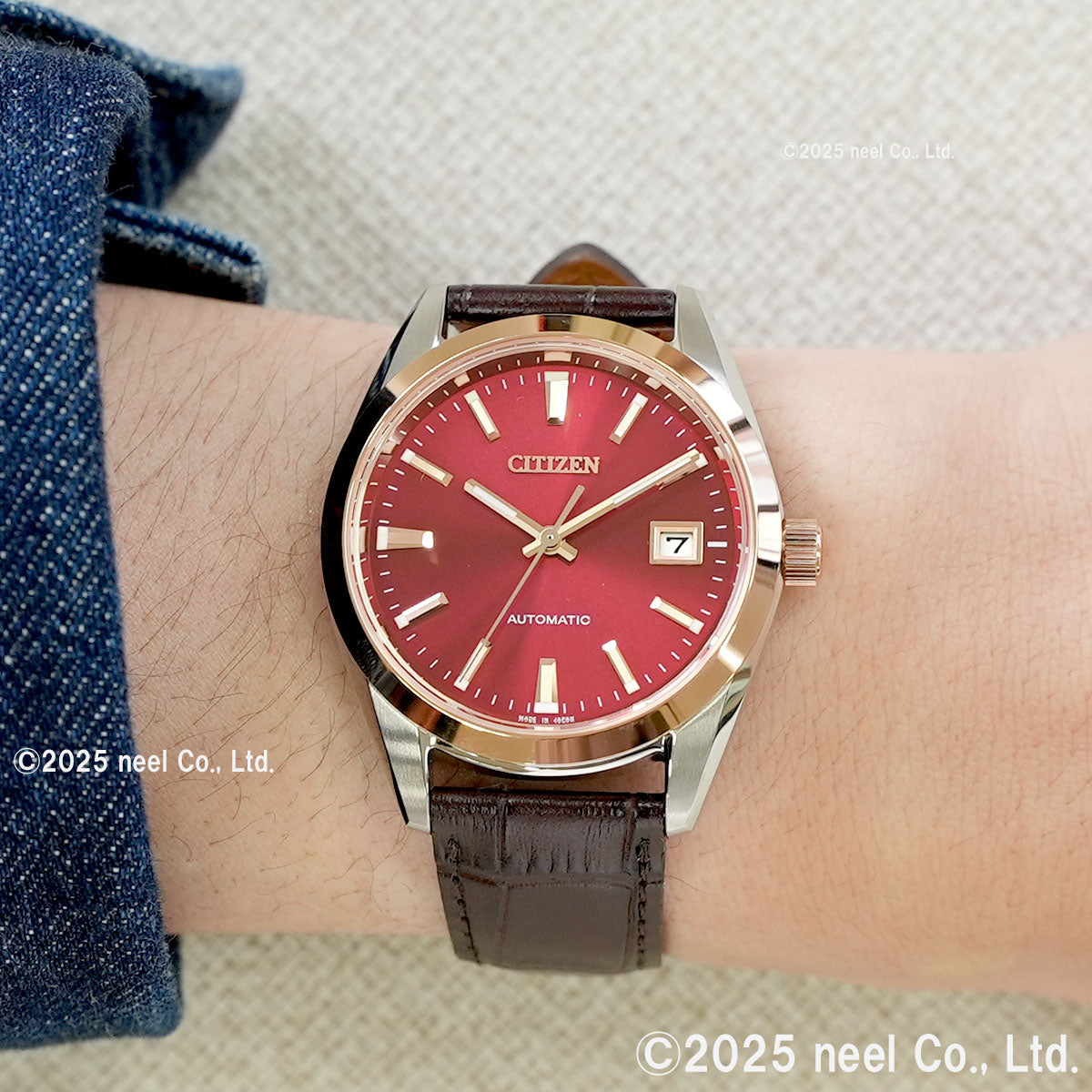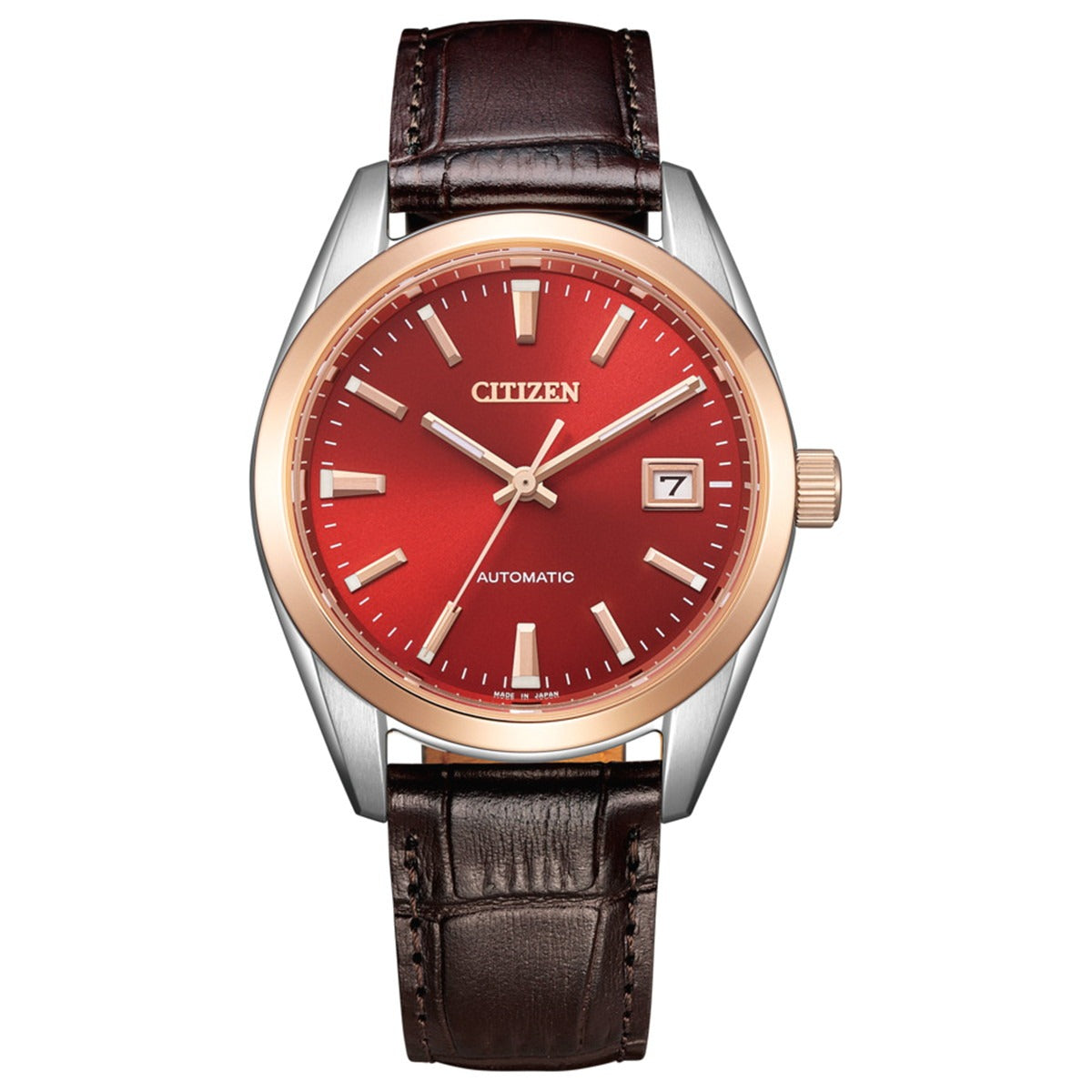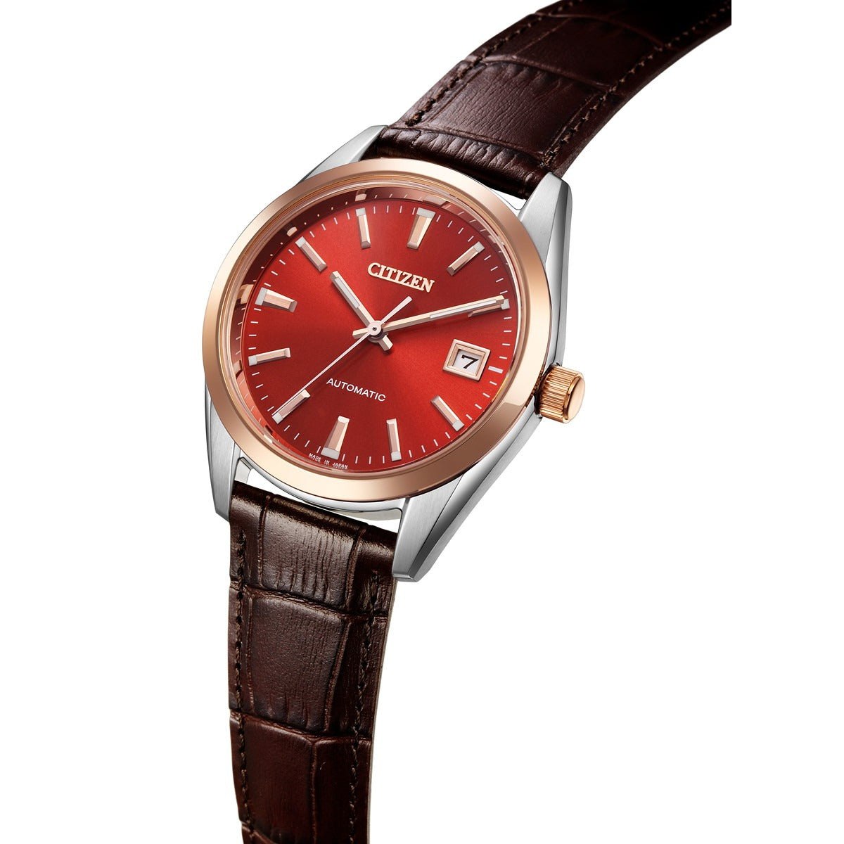 シンプルでベーシックなデザインのメカニカルウオッチで、ケース径38mmの小ぶりなサイズが人気のシリーズに、日本の伝統色をテーマにした文字板カラーを組み合わせました。夕暮れ時の空を思わせる茜色を採用。シリーズで初めてピンクゴールドとシルバーを組み合わせたケースに濃茶の革バンドを合わせたクラシカルなデザインです。
