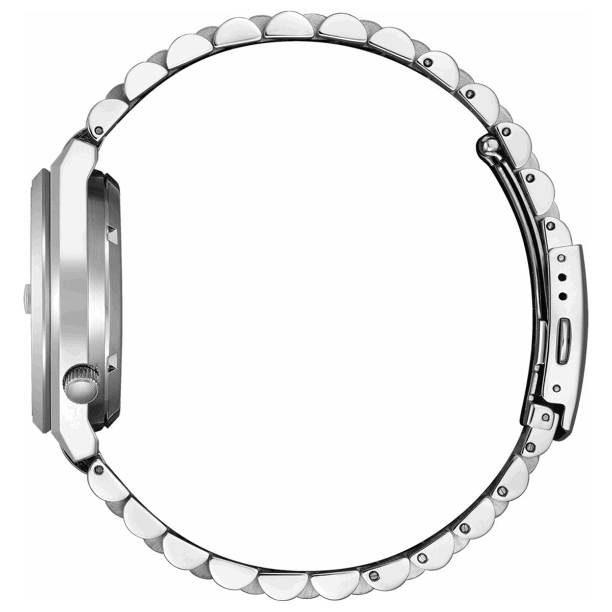 豊富なカラーバリエーションで海外でも人気のTSUYOSAから、やや小ぶりなサイズ感が魅力のケース径37mmが登場。女性の腕にもなじみやすいユニセックスモデルです。メタリックな質感の文字板に、シンプルな針とインデックスを組み合わせた3針タイプ。カレンダー部分には視認性を高める拡大鏡レンズを採用しています。文字板はグレーブルー。個性的なカラーの中から、自分らしい1本が見つかります。裏ぶたは、メカニカルウオッチならではのシースルーバック。回転する錘(おもり)やメカの動きを楽しむことができます。