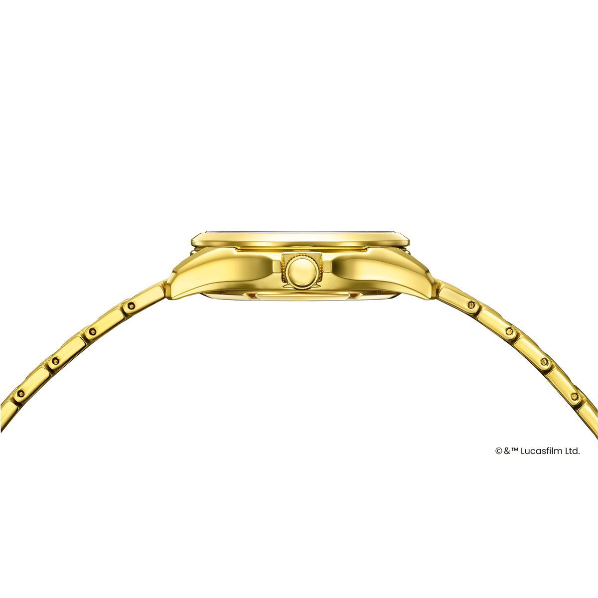 「STAR WARS」から、限定ボックス付きのスペシャルモデルです。「C-3PO」モチーフで、ゴールドを基調にまとめ、特徴的な腹部の円形を文字板上にデザインしています。インダイヤルには「C-3PO」の目をイメージした模様が入っています。