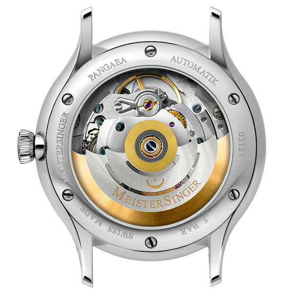 ロゴとモデル名に飾り文字を採用しているこのパンゲア デイ デイト 365 モデルは、かつて郵便馬車によって郵便が配達されていた時代を想起させる歴史的なデザインモデルです。パンゲア デイ デイトは、複雑な機械内部の仕組みにもかかわらず、パンゲア デイ デイトの外形はわずか10.5mmで、マイスタージンガー コレクションの中で最もエレガントな時計の1つです。日付と曜日リングは完全にオープンにデザインされていることで、文字盤に構造と奥行きを与えています。中央に配置されたシングルハンドが文字盤の周りを静かに回転します。12時の位置にある小さな赤い矢印は、現在の日付と曜日を指します。パンゲア デイ デイト 365は、このデザインに歴史的な特徴を採用することで、マイスタージンガーの時間哲学といかに完璧な調和を示します。