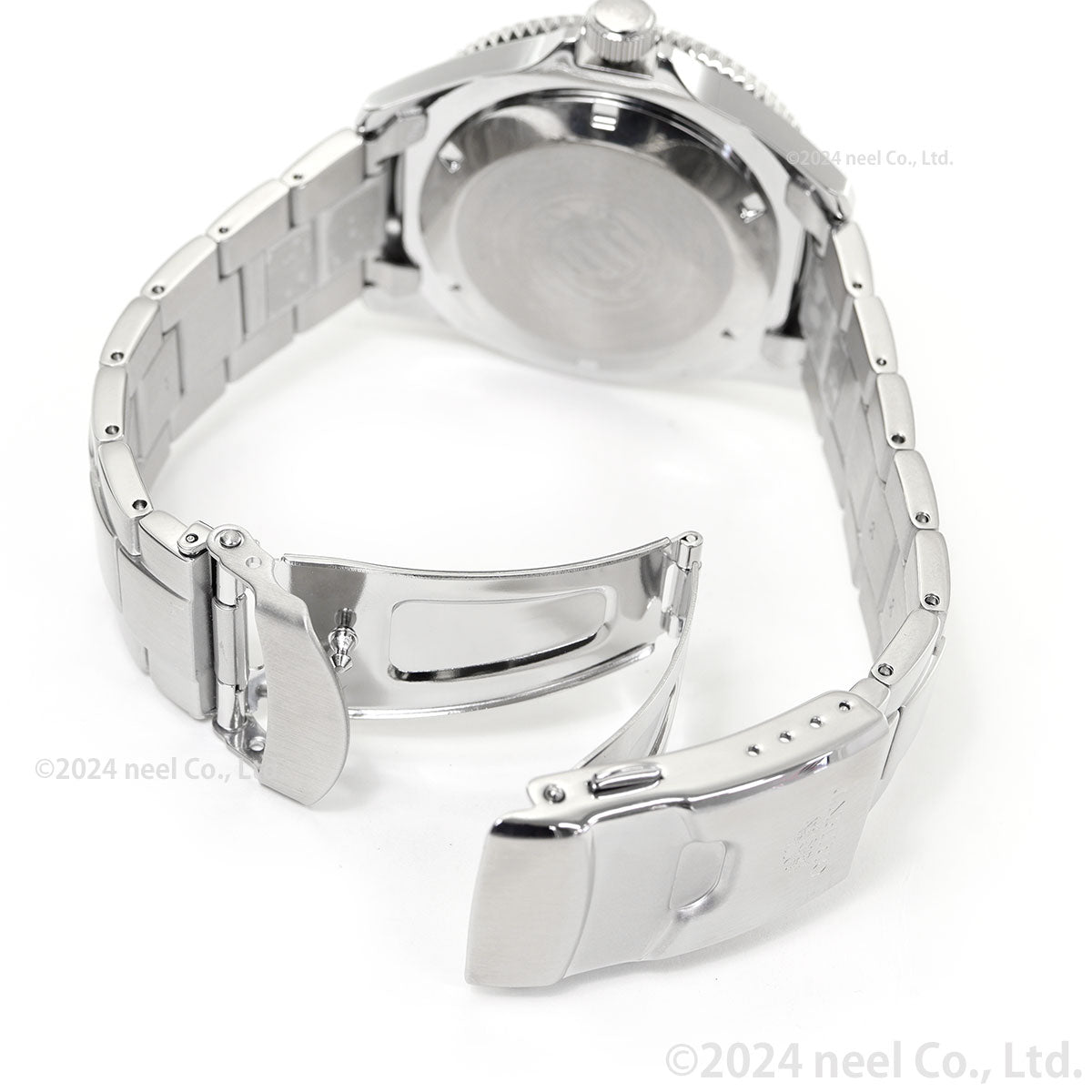 カジュアルでスッキリしたダイバースタイルデザインでありながら時針をアロー形状としサファイアクリスタルを採用することで視認性を向上。やや小ぶりでタウンユースにも使いやすいスタイリッシュなモデルです。*ISO規格に準拠したダイバーズウオッチではありません。