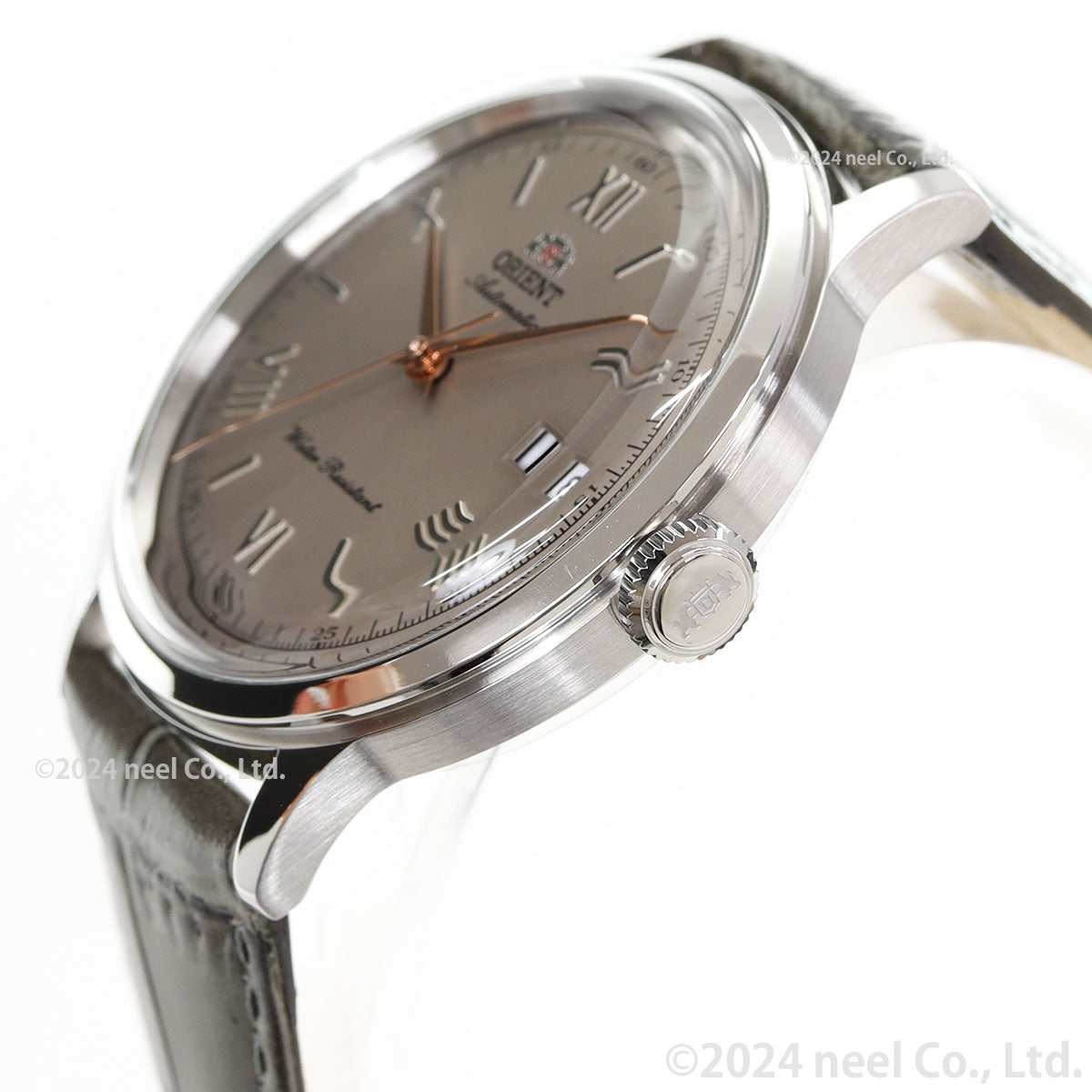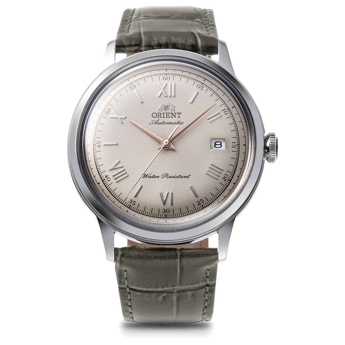オリエントにおける機械式時計の伝統的なスタイルを反映するのがクラシックコレクションです。クラシカルで伝統的な印象が際立つフェイスや、レトロなイメージを醸すボックスガラスやボンベ文字板、細身のラグを配した繊細なケースデザインなどが特長の「オリエントバンビーノ」は、オリエントの代表作として世界で広く親しまれてきたロングセラーです。今回の新作では、「カジュアルシーンにマッチするカラーリング」をテーマにして、従来と異なる色を採用しました。新しいカラーリングによる文字板は、放射目のグリーン、ネイビー、ベージュの3色をラインアップ。文字板の美観を強調するのは、ニュアンス豊かな各色との色彩効果を計算してピンクゴールドやシルバー色を巧みに使い分けたローマ数字や針です。これによって、クラシカルな『オリエントバンビーノ』が普段使いしやすいファッショナブルな時計へと生まれ変わりました。