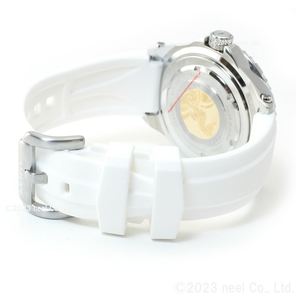 ISO6425準拠の本格ダイバーウォッチとして好評を博したMARINEMAN SEAHOURSEの後継機。新ロゴへの刷新に加えて、ラバーベルトモデルを新たに開発、ケースバックにもゴールドをあしらい、更に進化を遂げた永久定番モデル。生産品質を確保するため、全色初回生産のみの限定188個の発売で、希少性も高い。ISO6425 … ダイバーズウォッチ国際規格として試験項目が規定されている。ISO潜水防水規格:判読性、耐磁性、耐衝撃性、耐塩水性、水中作動性、耐外力性、耐熱衝撃性、加圧防水性(表示×1.25)、耐浸漬性すべての性能をクリア。加圧防水試験は実際の試験は20×1.25=25気圧でのテストとなる。【1】ケースはサジカルグレード(医療水準)のSUS316L高耐蝕性ステンレス材を使用。44.8mmの迫力サイズで、屈強なボディ。【2】ベゼルには超硬セラミックを採用。高級感のある光沢仕上げで、グリーン、ホワイト、ブラックの3色を用意。【3】トップガラスはレンズつきのサファイアクリスタルで、カレンダーが大きく見やすい。(透明性、視認性向上)また、いつまでもキズがつかないことにより視認性を維持。【4】文字盤は光沢感のあるラッピング仕上げ。グリーン、ホワイト、ブラックに加えて、希少性の高いグリーンMOP(白蝶貝)を用意。【5】ムーブメントは信頼性の高い日本製三針カレンダー自動巻き。秒針規制装置つき。【6】ケース厚は200mの高圧防水ながら12.8mmの薄さで、バランスが良く付け心地が非常に優れた設計。【7】ケースバック中央部には、ゴールド色のSEAHOURSE(タツノオトシゴ)をデザインした刻印が施され、見えない裏側までこだわりを表現。【8】針とインデックスには、最高グレードのホワイトスーパールミナスを使用し、夜間の視認性も抜群。【9】エクステンション機能付のメタルベルトは、ウェットスーツの上からでも装着できる。【10】専用シリコンベルトは、インサートモールディング(特殊成型)により、ケースに隙間無くフィットさせた、装着感を考慮した設計。【11】裏ブタには「No.001/188~」のシリアルナンバーとともに、全モデルに13桁の製品個別IDを刻印。専用WEBサイトから登録をすることで、定期点検、消耗部品交換、分解洗浄といったメンテナンスサービスをタイムリーに提供。