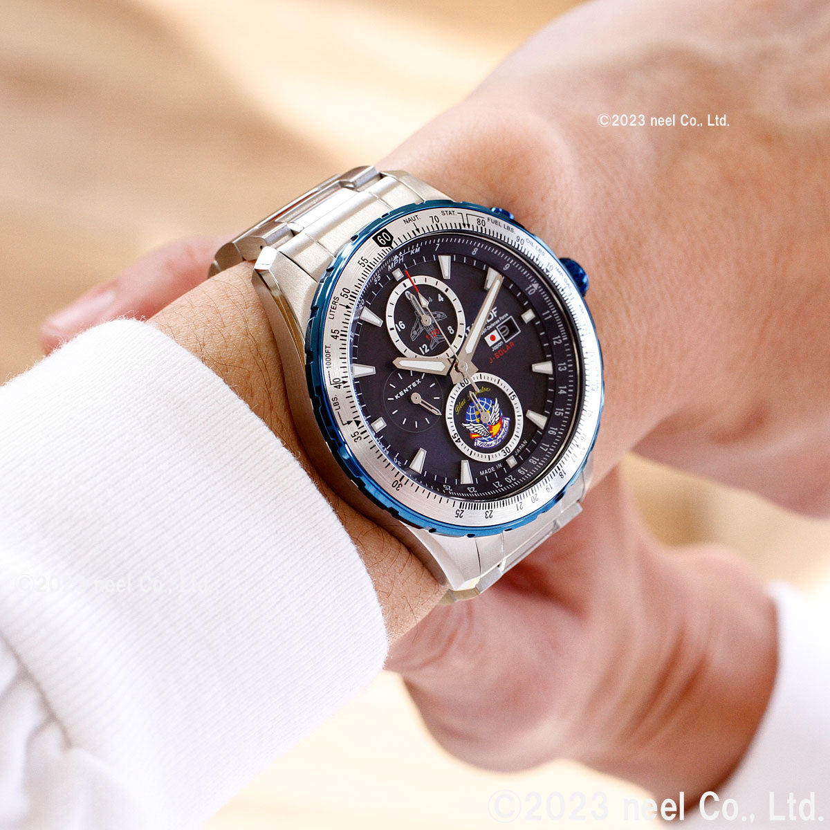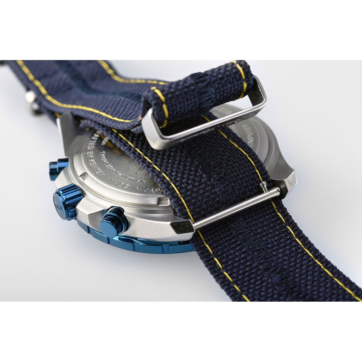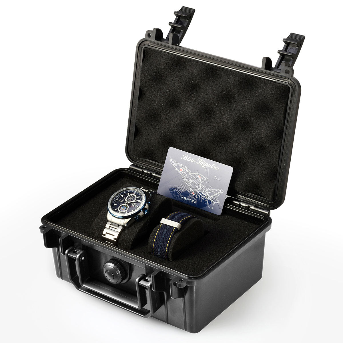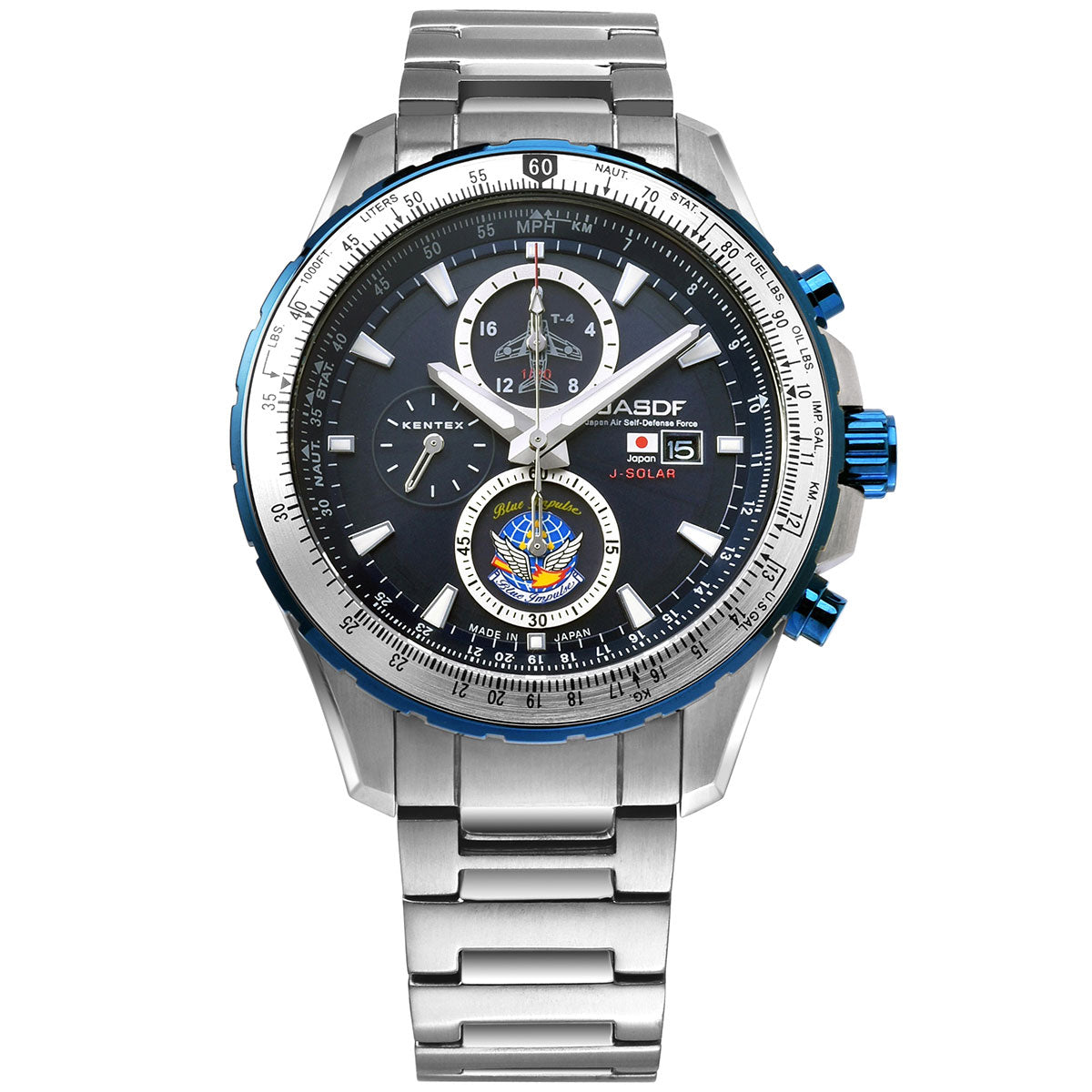 「高品質な時計を、適正な価格で。」をコンセプトとして企画、製造している日本の腕時計ブランド。ケンテックスは創業以来、時計外装の技術とデザイン力を培ってきました。私たちは日本のクラフツマンシップでディテールにこだわり抜き、機能と美を融合させた価値ある時計を造ります。ブルーインパルスモデルから、ソーラー発電式クロノグラフの新作が登場。時計本体は電池交換が不要なソーラー発電式モジュールに、1/20秒クロノグラフとフライトコンピュータ(回転計算尺)を備えた本格パイロット仕様。盤面6時位置には、航空自衛隊幕僚監部協力によるブルーインパルス公式エンブレムがデザインされ、防衛相共済組合登録商品にふさわしい誇り高きデザインとなっている。更に、ブルーインパルスモデルだけのスペシャルアクセサリーとして、CORDURAナイロン製のNATOベルトが付属し、専用ツール不要のワンタッチ構造で簡単にベルト交換が楽しめる。T4機体とパイロットがデザインされたスペシャルギャランティーカードと、専用プラスチックボックスとともにお届け。生産はブルーインパルスの設立年にちなんだ1960本限定生産。※ブルーインパルスは正式名「第四航空団第11飛行隊」として、航空自衛隊松島基地に所属する日本で唯一のアクロバット飛行隊です。■仕様の特徴■6時位置には航空自衛隊幕僚監部協力によるブルーインパルスの公式エンブレムが、12時にはT-4機体がそれぞれデザインされている。ムーブメントは、信頼性の高い日本製ソーラークロノグラフを採用し、フル充電時最大6ヵ月間の稼働が可能。(J-SOLAR)クロノグラフは、1/20秒まで正確に計測が可能で、60分の積算計も搭載。ケースは錆に強いSUS316Lステンレスを使用し、ベゼルとボタン類にはブルーIP加工を施した、シルバーとブルーのコンビカラーデザイン。ベゼルには、万が一の航空計器故障などの際に速度計算や燃料計算が可能なフライトコンピュータ(回転計算尺)機能を装備。防水性は本格パイロットウォッチでありながら10気圧(100M相当)の強化防水設計。ダイアルは、太陽光下はもちろん室内でも充電可能な光量透過性の高い特殊プラスチックを使用しながら、メタルのような高級感ある放射仕上げ。ダークブルーの盤面に視認性の高い先細バーインデックスを採用し、スーパールミナス(強畜光)で夜間の視認性も確保。ベルトは、錆に強いSUS316Lステンレスを使用。ミラーとヘアライン仕上げの組み合わせで高級感のある仕上がり。バックルは、操作しやすいダブルプッシュ式3つ折れバックルで、誤作動を防止するセーフティロック部には「Blue Impulse」のロゴが入る。ブルーインパルスの設立年にちなんだ1960本限定生産で、裏蓋にはT-4の機体デザインとともに限定シリアルナンバーを刻印。アクセサリーとして強度、軽量性、耐水性に優れ軍事用にも使用されるCORDURAナイロン製のNATOベルトを付属。ベルト交換は専用ツールが不要なワンタッチ式で、手軽にベルト交換が楽しめる。ブルーのT-4機体とパイロットがデザインされたスペシャルギャランティーカードが付属。製品は、公式エンブレム入りメタルプレートが付いた専用プラスチックケースでお届け。安心と信頼の日本製(MADE IN JAPAN)