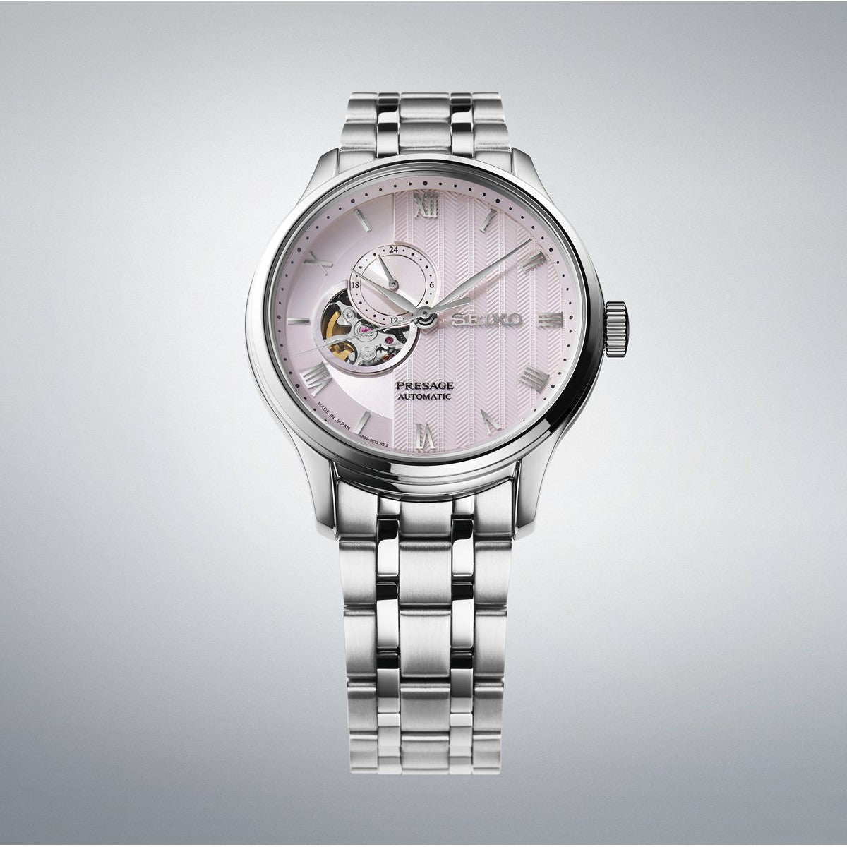 京都の情景から着想したカラーバリエーションモデルが登場。優美な京都の桜の情景を、落ち着いた淡いピンク色のダイヤルで表現。