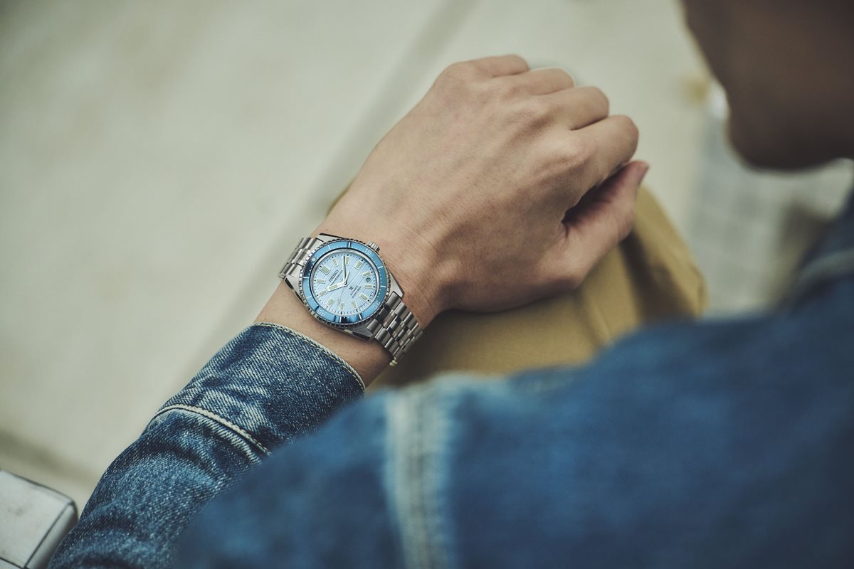 コンセプト:SEIKOダイバーズウオッチの伝統を進化させ、より大胆にモダナイズした、新スタイルエレガントダイバーズダイバーズ専用薄型メカニカルムーブメント、Cal.6L37を搭載。ダイビング中の過酷な条件での使用に対応し、セイコーの厳しいダイバーズ規格を満たす、薄型かつ高精度の新型メカニカルムーブメントとなります。精度:日差+15秒~-10秒 /振動数:28800振動/時(8振動/秒)新生マリーンマスターを象徴するあらたなDLレイアウトを採用。(DL12時位置SEIKOロゴ下に「MARINEMASTER」を標記)ボックス型サファイアガラスとシースルーバックを搭載しながらも、セイコーの現行メカニカルダイバーズ最薄の厚さ:12.3mmに抑えたコンパクトな設計。ケースシルエットは1965オリジナルを継承しつつも、美しい輝きを放つザラツ鏡面部を加えることで、エッジを抑えた洗練されたフォルムを実現。セイコーダイバーズ史上初のシースルーバックを採用。サファイアガラス越しに美しい仕上げが施されたメカニカルムーブメントを鑑賞可能。1965オリジナルを引き継ぐ時分針形状と、特長的な角型インデックスには、高輝度ルミブライトを塗布することで水中での高い視認性を確保。打ち寄せる波のリズムをモダンに表現した、ホリゾンタルパターンを新規型打ちで採用。ビジネスシーンでの着用にもなじむ、高い汎用性を発揮。