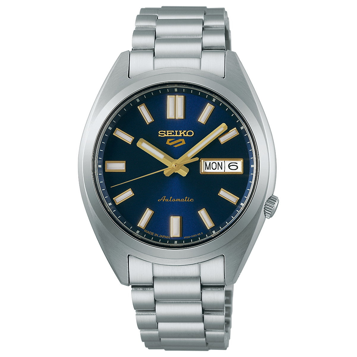 人気のSNXSシリーズより、ゴールドのキーカラーが特徴のモデルが登場。トラッドファッションにおいて多様されるアイテム(ブレザーの金ボタン等)とコーディネートしやすいカラーリング。針・インデックスの金色の差し色は深みのあるダイアル色に映え、上品な印象を与える。