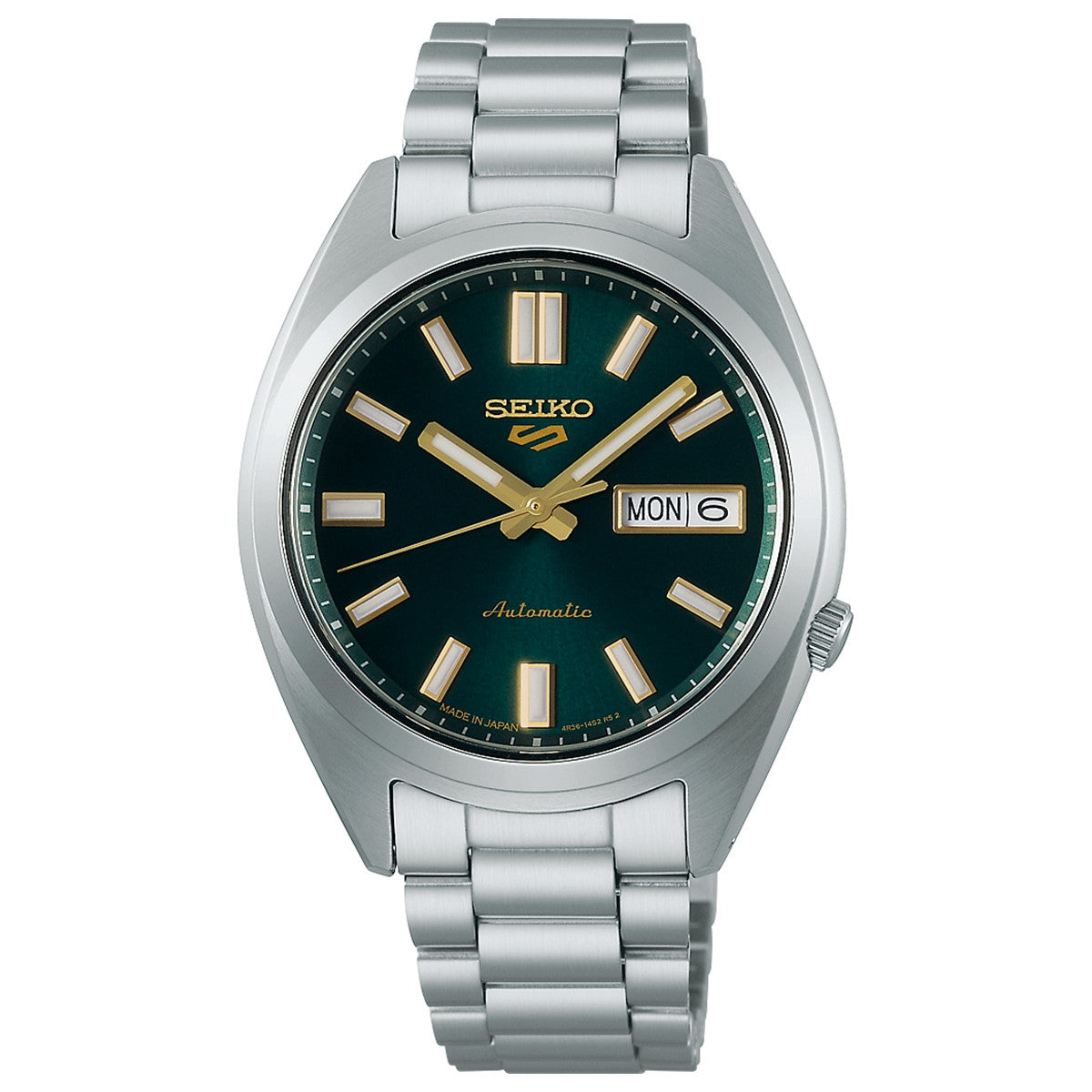 人気のSNXSシリーズより、ゴールドのキーカラーが特徴のモデルが登場。トラッドファッションにおいて多様されるアイテム(ブレザーの金ボタン等)とコーディネートしやすいカラーリング。針・インデックスの金色の差し色は深みのあるダイアル色に映え、上品な印象を与える。