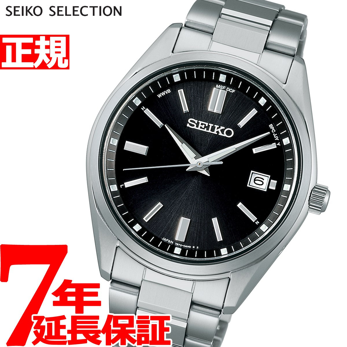 キャリバー7B72(電子りゅうず搭載)で質感の高いソーラー電波時計が登場。ケースのラグに段差をつけることで、光の明暗を強調。キリっとした印象に仕上げました。略字は別体の金属パーツとすることで、インデックスの質感が向上しました。針形状も見直し、ルミブライトを追加することで、夜間を含めた視認性も向上しています。サファイアガラスには、スーパークリアコーティングを施しました。光の反射を抑えることでダイヤル視認性を向上させることに加え、表層の防汚膜により汚れも付きにくくしました。電子りゅうず搭載で、時差修正がより簡単になることに加え、世界5エリア6局(日・中・米・独・英)の標準電波を受信することで、スペックも向上しました。JIS1種の耐磁対応になることで、使い勝手も向上しております。
