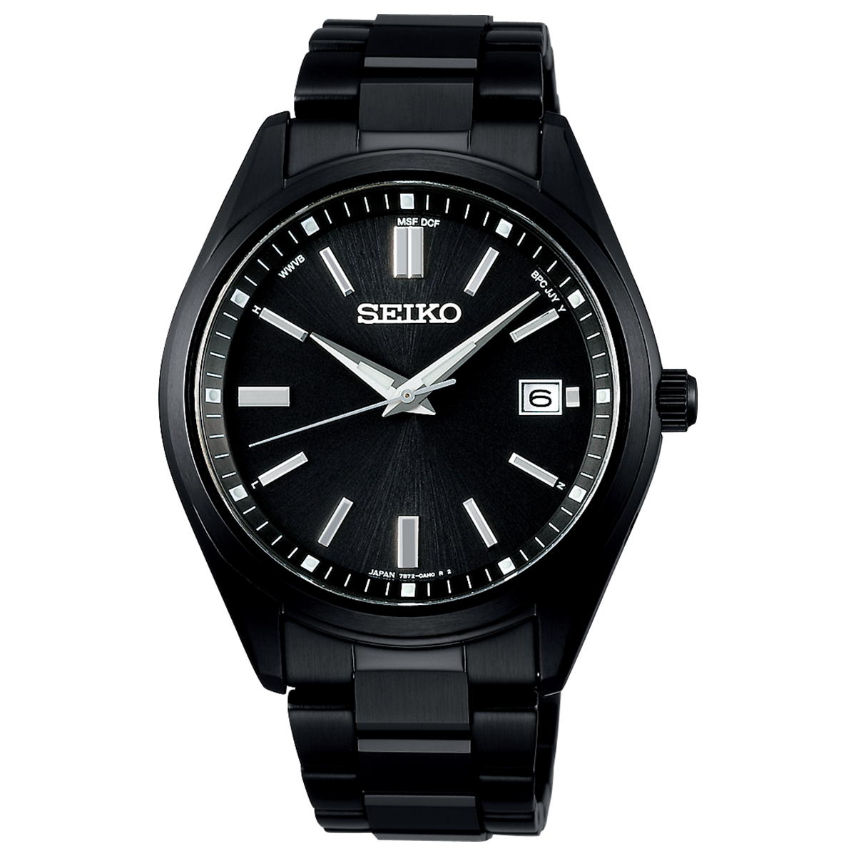 キャリバー7B72(電子りゅうず搭載)で質感の高いソーラー電波時計が登場。ケースのラグに段差をつけることで、光の明暗を強調。キリっとした印象に仕上げました。略字は別体の金属パーツとすることで、インデックスの質感が向上しました。針形状も見直し、ルミブライトを追加することで、夜間を含めた視認性も向上しています。サファイアガラスには、スーパークリアコーティングを施しました。光の反射を抑えることでダイヤル視認性を向上させることに加え、表層の防汚膜により汚れも付きにくくしました。電子りゅうず搭載で、時差修正がより簡単になることに加え、世界5エリア6局(日・中・米・独・英)の標準電波を受信することで、スペックも向上しました。JIS1種の耐磁対応になることで、使い勝手も向上しております。