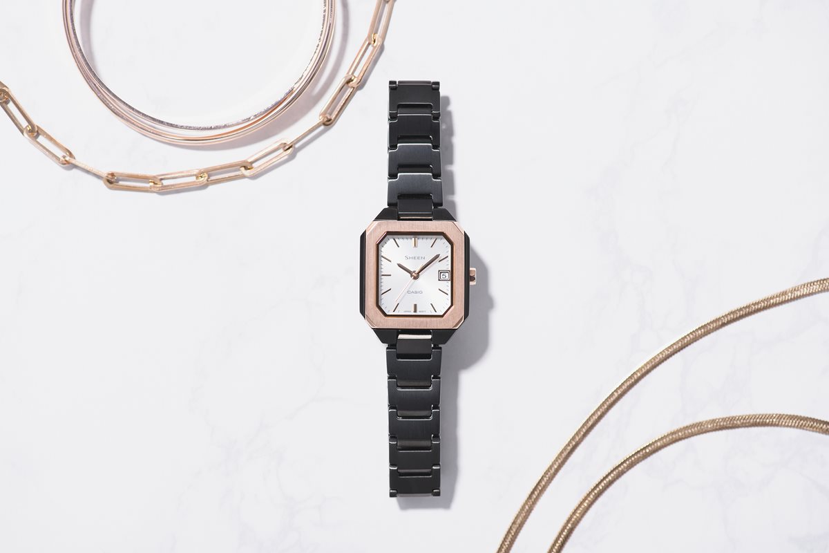 カシオ シーン CASIO SHEEN ソーラー 腕時計 レディース SHS-4528GBJ-7AJF ブラック ピンクゴールド