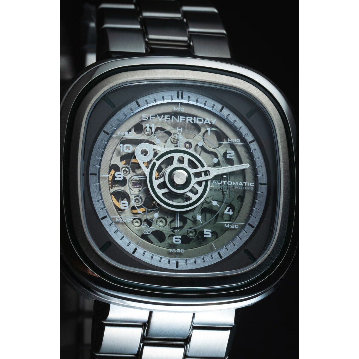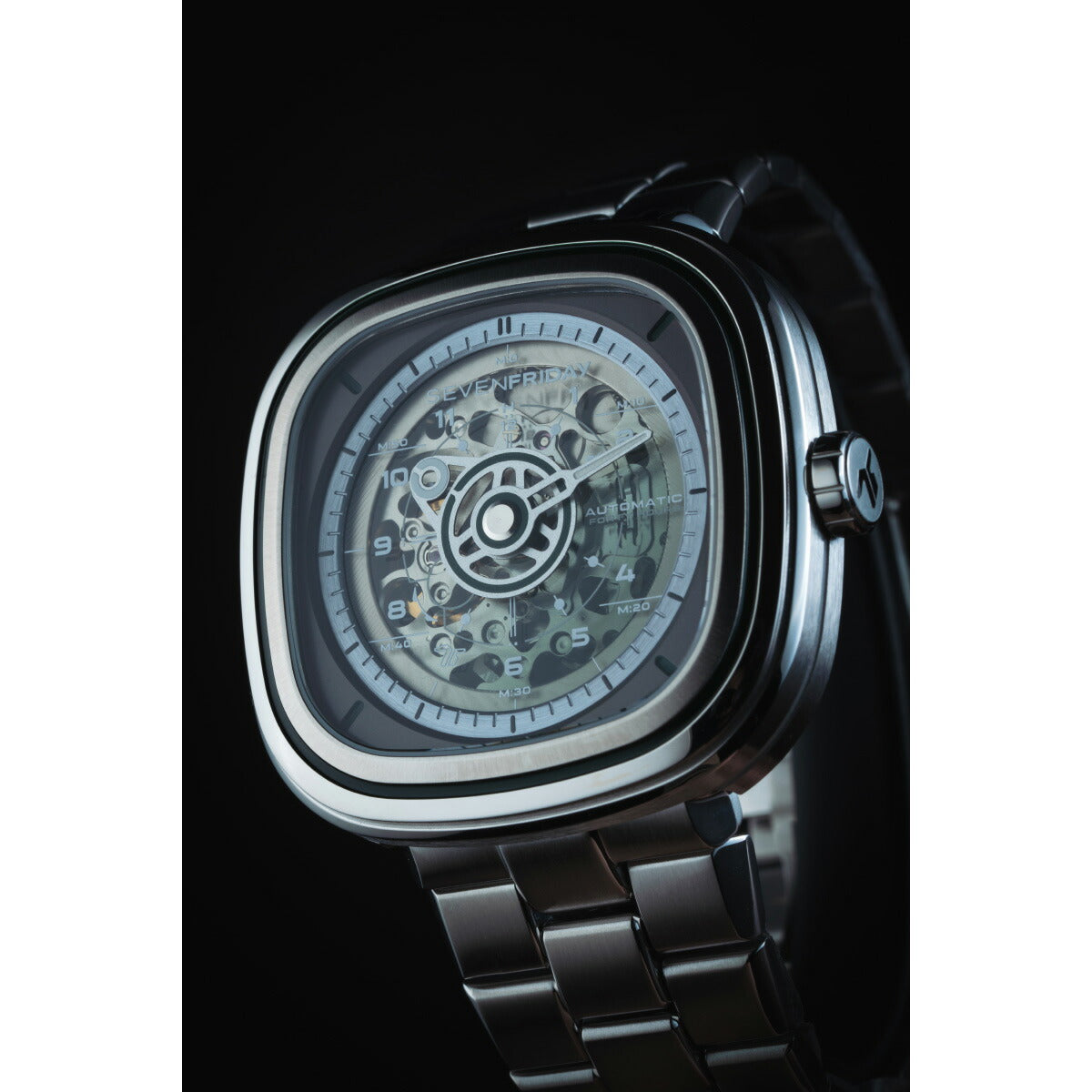 T-Seriesは、SEVENFRIDAYの他のコレクションと比べて小型・薄型・軽量に設計され、透明感のあるデザイン、グラデーション、スケルトンムーブメント、そして印象的なグラフィックが融合。視線を引き込む独特のインターフェースを生み出しています。また、T-Seriesの「T」は工業技術の設計図(Blueprint)からインスパイアされ、グラフィックデザインとスケルトン構造が調和。テクニカルな美しさを極めた一本に仕上がっています。