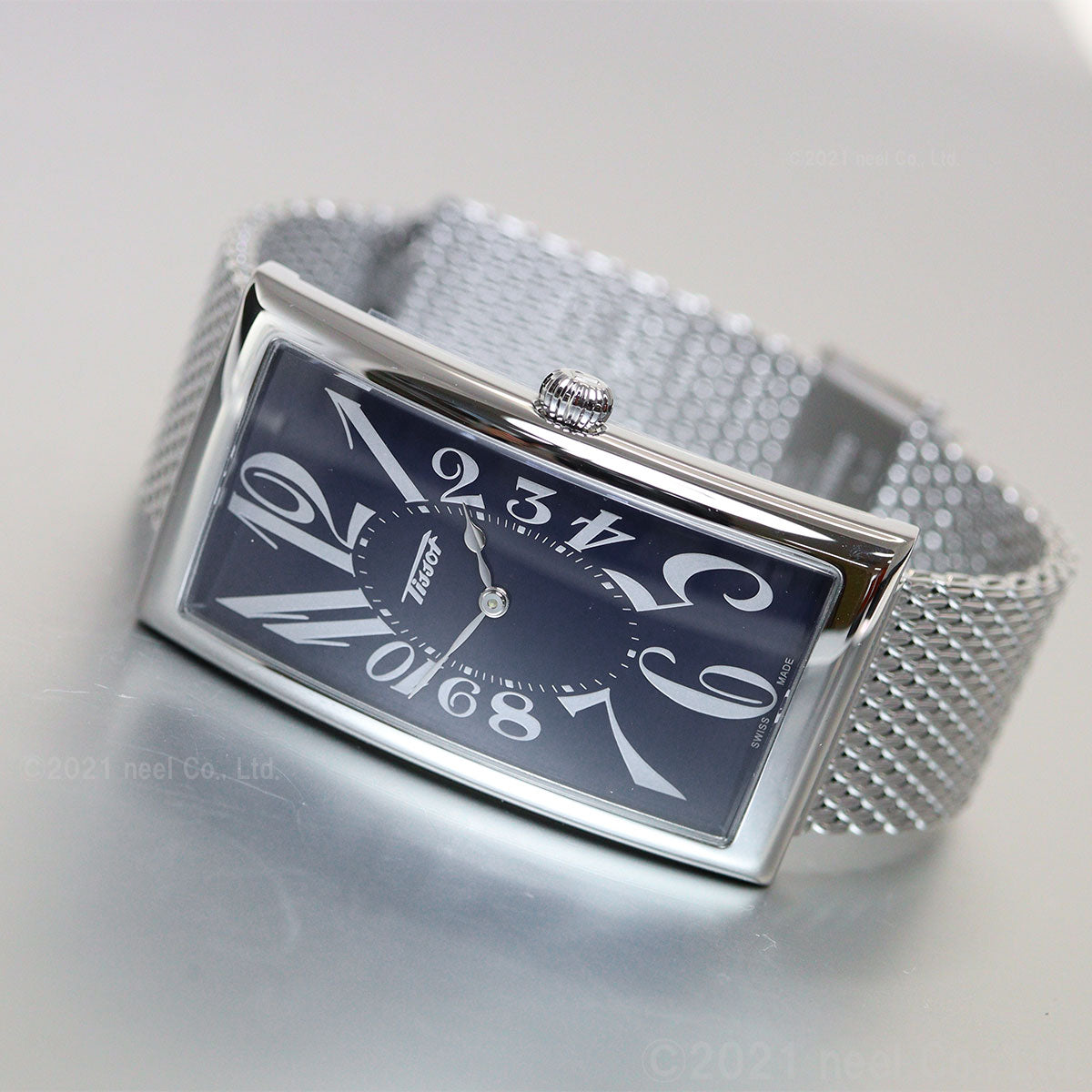 1916年に誕生し「バナナ・ウォッチ」の呼称で愛される、TISSOTを代表するアイコニックモデル。斬新さと高貴さの両方を併せ持つ「バナナ・ウォッチ」のユニークな個性は、レクタングルケースの小さな世界に創造された完璧なバランスによって実現されています。ダイアル中央から放射状にデフォルメされた躍動感のあるインデックスがアール・ヌーヴォー時代を彷彿とさせ、流れるようなラインを描くスペード針は華やかな装飾性に富む一方で華美な印象を抑え、絶妙な均衡を作り上げています。一見すると直線的なケースシェイプに秘められた「バナナ・ウォッチ」の呼称の由来ともなる曲線は、ケース自体を大きく緩やかに湾曲させるという大胆な発想によって、手首に沿うよう緩やかにカーブし着用感を高めています。2020年、日本だけで展開するスペシャルカラーが登場。ブルーダイアルに腕なじみがよいミラネーゼブレスレットのコンビネーション。ファッション性の高いミラネーゼブレスレットはカジュアルスタイルにもジャケットスタイルにも合わせやすいアイテムです。