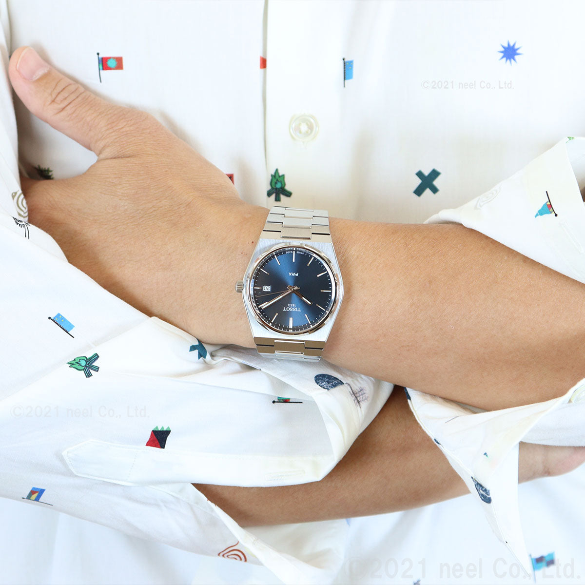 ソリッドな質感とスリムな一体型デザインが際立つPRX[ピーアールエックス]は、1978年のオリジナルモデルを再解釈し、より洗練され、より高精度にアップデートしたコレクション。ケースとブレスレットが一体化した薄型の特徴的なデザインはヴィンテージ感がありながらも斬新でスタイリッシュな、時代を超越するタイムピースです。 その名に”Precise and Robust(高精度かつ堅牢)”という意味を持ち、“X”で10気圧防水性能を表すPRXの、ケースからブレスレットに向かって幅広のリンクへとシームレスに変化を遂げる滑らかで美しいライン。40mm径のケース中央ではポリッシュ仕上げのベゼルが冷たくも艶やかな光沢を放ち、そこからサテン仕上げのケースへと、あえて垂直ではなく斜めに自然につなげていくという細やかなディテールへの徹底したこだわり。全体に施された繊細な仕上げの技巧にはティソが長い歴史の中で培ってきたクラフトマンシップが如実に表れています。また、デザインのみならず、機動性と柔軟性による人間工学に基づいて開発されたブレスレットのスムーズなフィット感と腕になじむ薄型ケースという実用面も併せもち、オーナーは抜群の着用感を体感できます。光を受けることで一層ダイアルの美しさが映えるサンレイ仕上げのブルーダイアルにSuper-LumiNovaコーティングの蓄光針が視認性を高め、滑らかな着用感とデイリーに使いやすい10気圧防水性能を備えたTissot PRX。身につけるアイテムにこだわる人のために生まれた、時代を超越するタイムピースです。