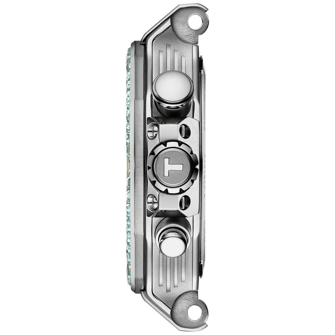 クオーツ・クロノグラフ・ムーブメントを搭載したこの時計は、あなたを自由への道へと誘います。ユニークなデザインと38mm径がコレクションのアイデンティティに新たな一面を加えました。正確なタイミングにフォーカスし、モータースポーツへの情熱を反映しています。TISSOTはモーターサイクルレースとのパートナーシップからインスピレーションを得て、モーターサイクルのダイナミズムとスポーツの情熱を反映した時計をつくりました。T-Raceコレクションは、着用者をメカニカルな環境に浸らせ、スピリットを目覚めさせます。ベゼルはブレーキディスクを、プッシャーはハンドルバーからインスピレーションを得ており、ケースサイドにはエンジンの冷却フィンが再現されています。この時計は10気圧(100m)防水で、クォーツ・クロノグラフ・ムーブメントを搭載しています。