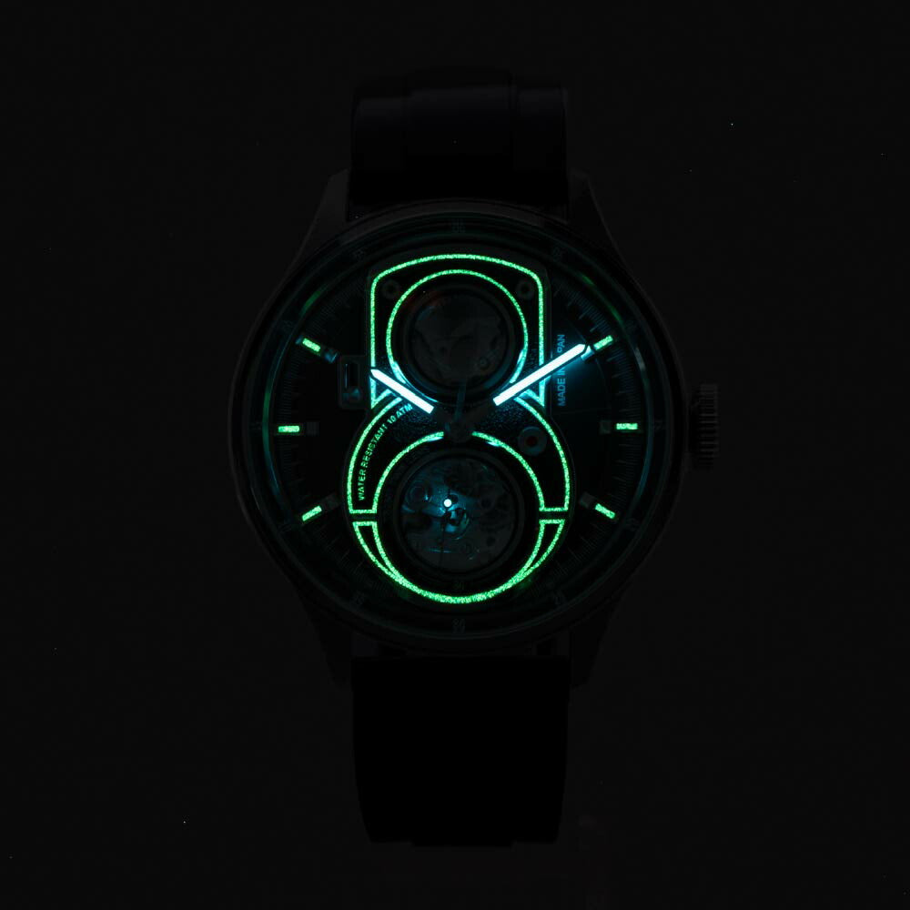 象徴的な二眼レフカメラ「Ikoflex」からインスピレーションを受けたATLLiteは、その洗練された職人技を生かしつつ、軽量で使いやすいデザインに仕上げました。ATLシリーズの特徴である深みと視覚的な魅力はそのままに、日常使いに適したシンプルさと使いやすさを追求しました。美しいデザインと機能性のバランスを重視しながら、機械式時計ならではの魅力を引き立てています。