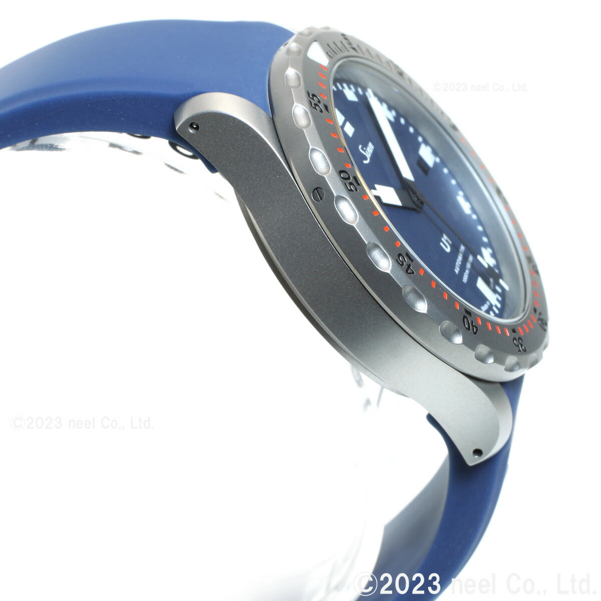 ブルーダイヤルを備えたU1.Bは、真っ白なインデックスと時・分針が強いコントラストを生み出し、常に高い視認性を保証します。U1.Bの特徴的なダイヤルカラーは、同色のブルーのシリコンストラップによってさらに強調されています。強い衝撃でも外れることのない特殊結合方式によって固定された逆回転防止ベゼルには高い耐傷性を誇るテギメント加工が施されています。装着感を高めるために4時位置に取り付けられたリューズや1000mの防水性能など、シリーズに共通した高いスペックを備えています。