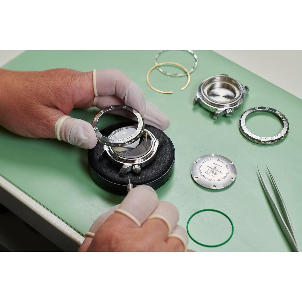 | 裏蓋:退役したU18潜水艦のUボート・スチール、ねじ込み式 | |