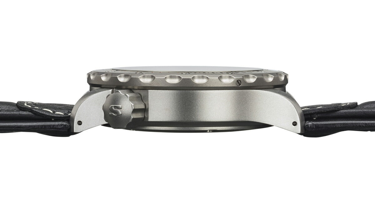 ジンのダイバーズの中で直径47mmという最大サイズのケースを持つダイバーズウォッチです。ケースやリューズに採用には海水耐性の高いドイツ潜水艦の鋼鉄Uボート・スチールを採用しています。逆回転防止ベゼルには硬化処理が施され、外れることのない特殊結合方式によって固定されています。信頼性の高い機能性と風防の曇り防止に効果を発揮する除湿機構であるArドライテクノロジーの採用など、ジン独自のテクノロジーが満載されています。