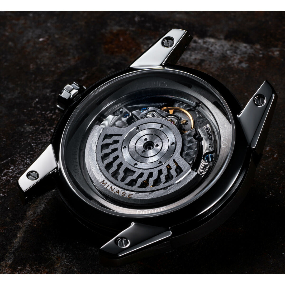 眺めるたびに新しい発見があるものを究極のインダストリアルデザインと呼ぶのであれば、DIVIDOは、シンプルさの中に超人的なモノづくりのストーリーを備えたモデルです。ケースインケース構造を採用したDIVIDOは正面から眺めると上下左右がスケルトンになっていることに気がつくでしょう。さらにケース及びラグは分解構造になっており、一体型のケースでは実現不可能な多面体の造形を生み出しています。ラグがケースの上側に乗り出した構造の時計は、DIVIDOの他に存在しないかもしれません。またダイヤルは、日本古来の“雪平”模様を実現するためプリントではなく電鋳という技法を採用。既成概念を超えた発想と技術から生まれたDIVIDOはMINASEのアイコニックモデルの1つです。ディヴァイドはケース上下、4つのラグを分割構造にすることで既成概念を超える立体感とシャープエッジを生み出したタイムピース。