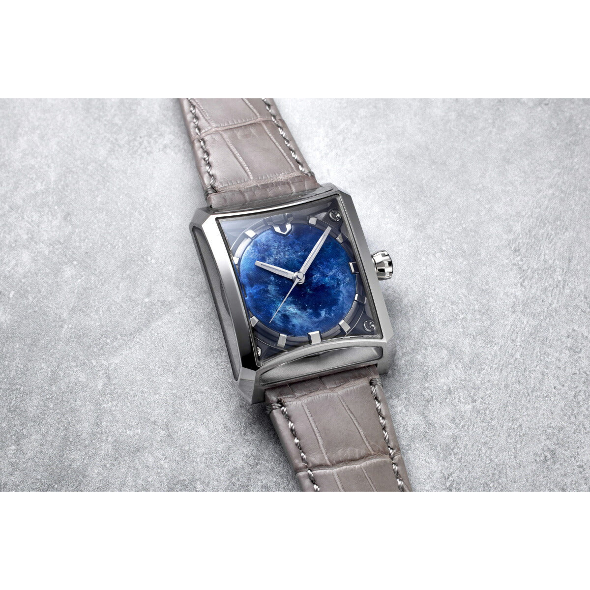 「悠彩文字盤」は、現代美術家である高屋永遠氏とMINASEが共同製作をするMINASEの新たなJAPAN ART COLLECTIONです。「悠」は、悠久・悠然とした時の流れを象徴し、直線的な時間の経験とは異なり、永遠的で、ゆるやかに循環するような時間の奥行きを表します。「彩」は、色彩そのものが持つ揺らぎや多層性を意味し、光が反射し、見る角度や環境で異なる表情を見せる彩りは、時間がもたらす「揺らぎの美学」を意味します。光と色彩の揺らぎを通して時間の奥行きを映し出し、時間の中に潜む不可視の豊かさを体感できる現象的な「悠彩文字盤」が、MINASEが誇るザラツ研磨の輝きを放つ時計ケースの中に収まることで、時のアートが完成します。悠彩文字盤はひとつひとつ高屋永遠氏が描いています。同じ文字般はひとつも無く、掲載されているイメージ写真と差異がありますことを、予めご了承ください。正面写真外のイメージ写真は、文字盤の色や、その他仕様が異なっている場合がございます。