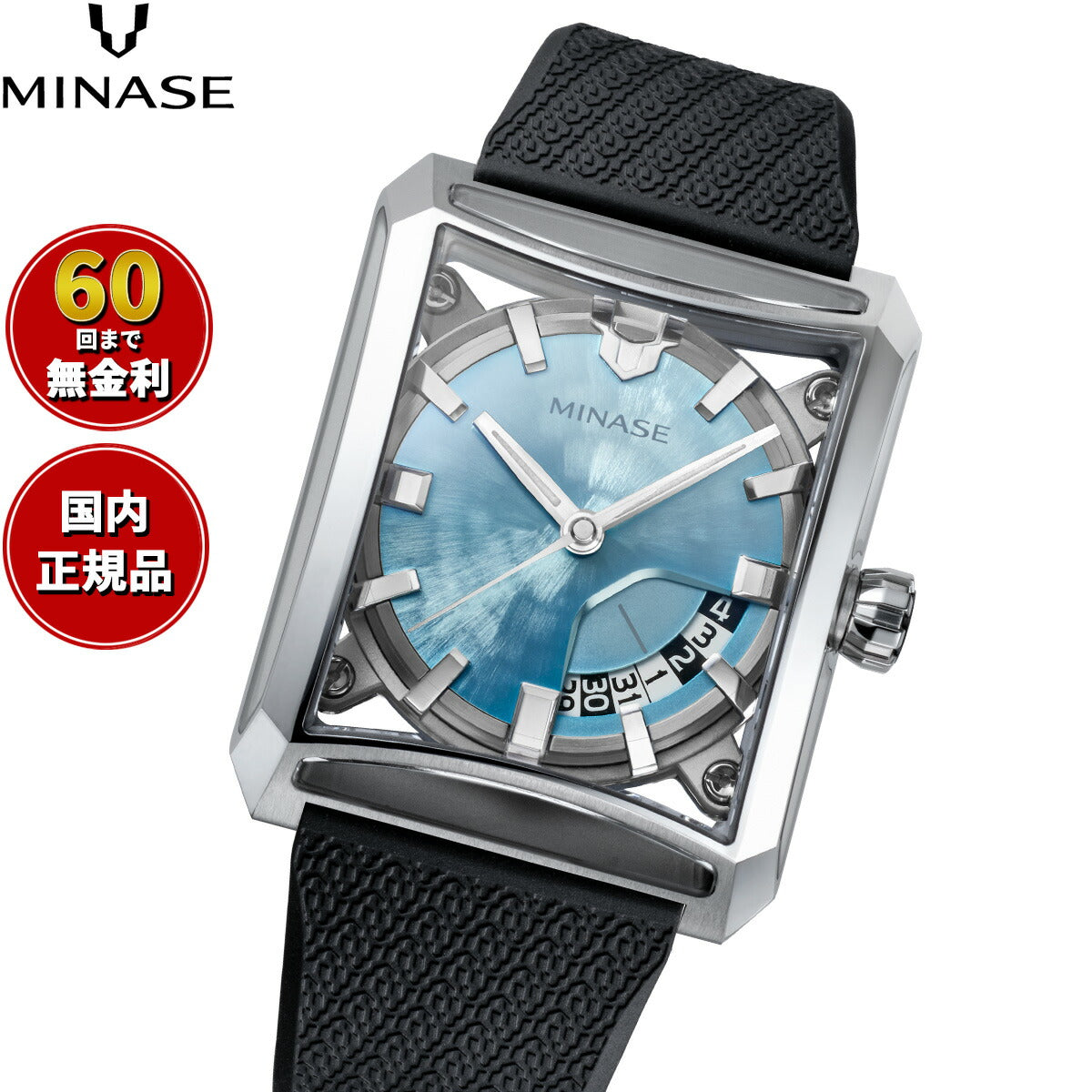商品名 | ミナセ MINASE 腕時計 メンズ 自動巻き SEVEN WINDOWS ラバーモデル VM15-RBKYIB-SSD |