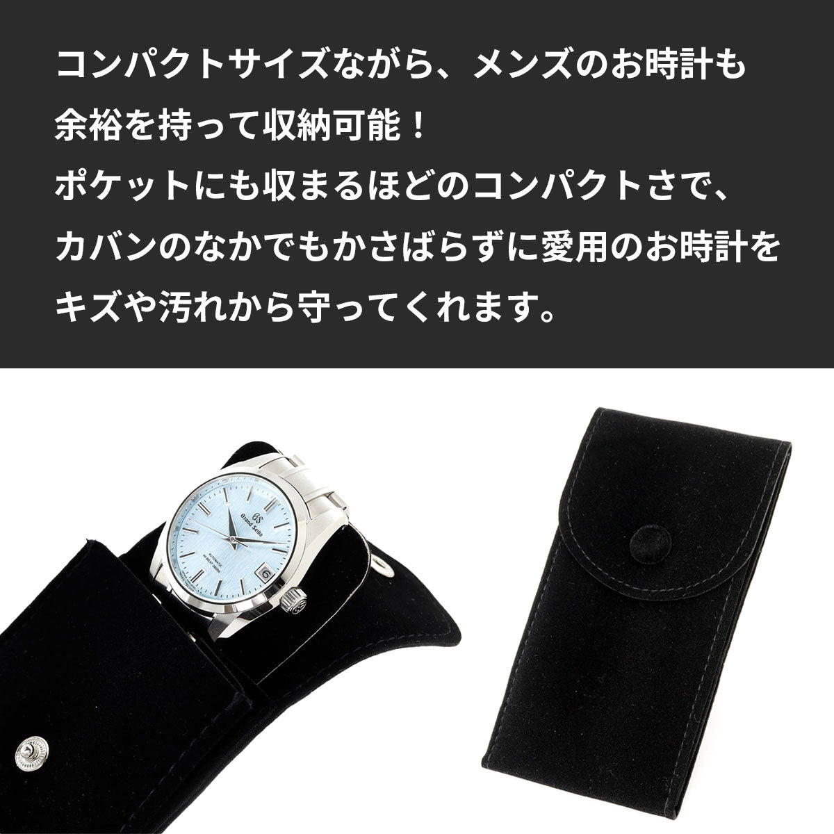 時計ケース 1本 収納 持ち運び ポータブル コンパクト ベロア調 ブラック