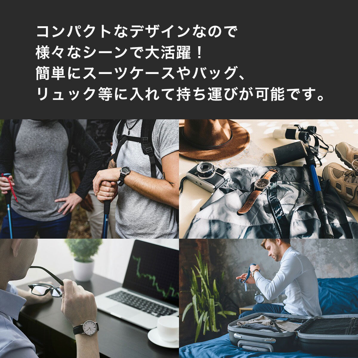 コンパクトサイズながら、メンズのお時計も余裕を持って収納可能!ポケットにも収まるほどのコンパクトさで、カバンのなかでもかさばらずに愛用のお時計をキズや汚れから守ってくれます。コパンパクトなデザインなので様々なシーンに大活躍!簡単にスーツケースやバッグ、リュック等に入れて持ち運びが可能です。