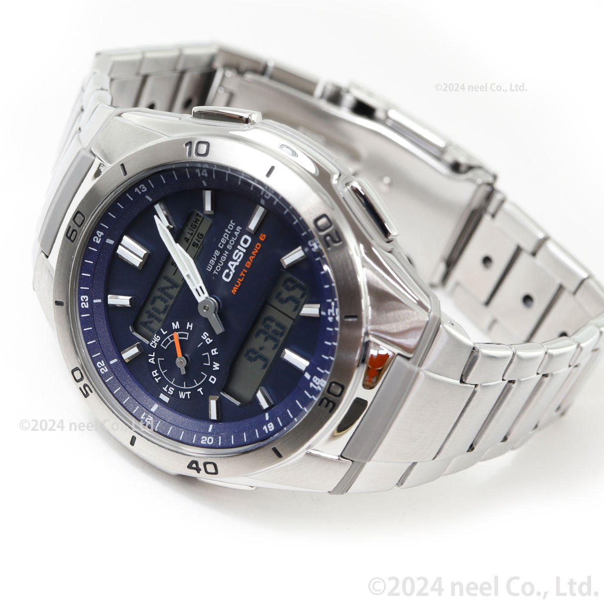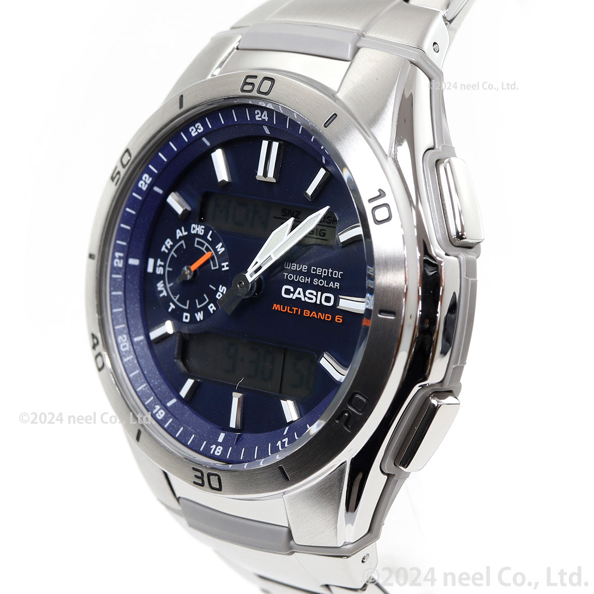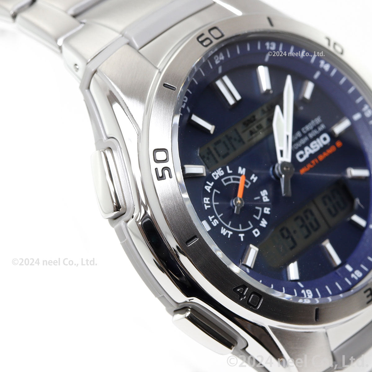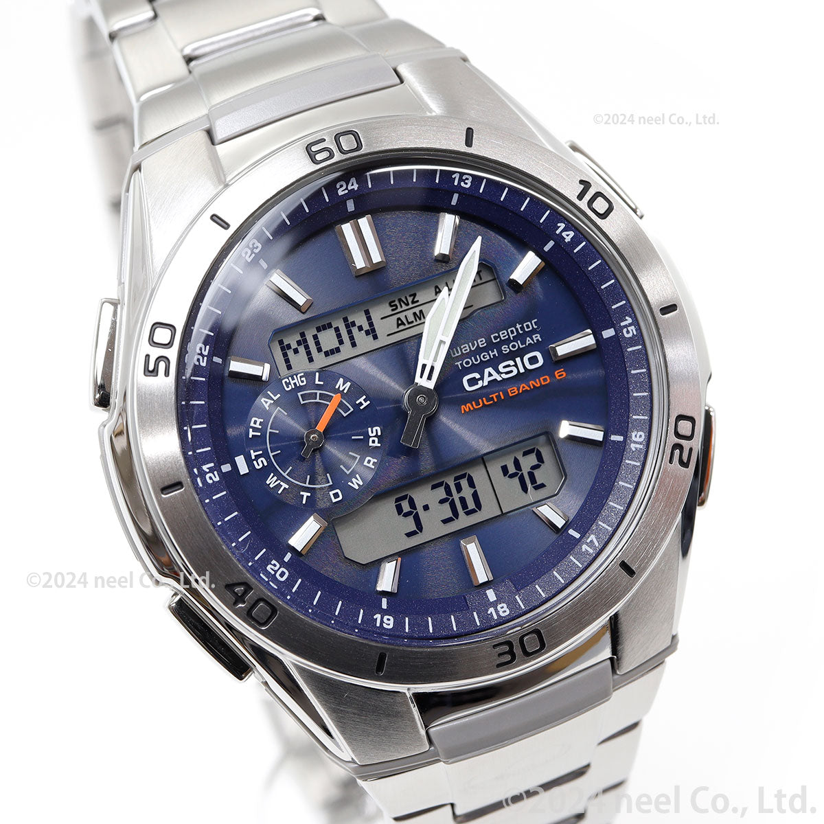日本・中国・アメリカ・ヨーロッパの標準電波に対応したマルチバンド6のソーラー電波時計です。ワールドタイムや時刻アラーム、カレンダーなどをわかりやすく上下の液晶に表示。また、9時位置の小針が現在どのモードにいるのかを示してくれるので、操作をアシストします。更にWVA-M650Dは、付属の専用ツールでアジャストが可能なプッシュ&リリースバンドを採用。簡単にバンドの長さを調整できます。